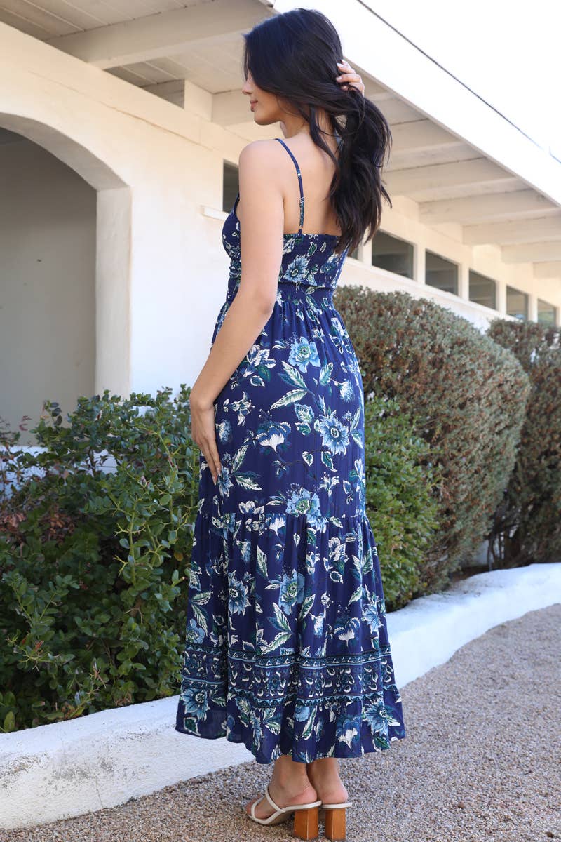 F4F50-A730 V NECK TWIST FRONT TIERED MAXI DRESS