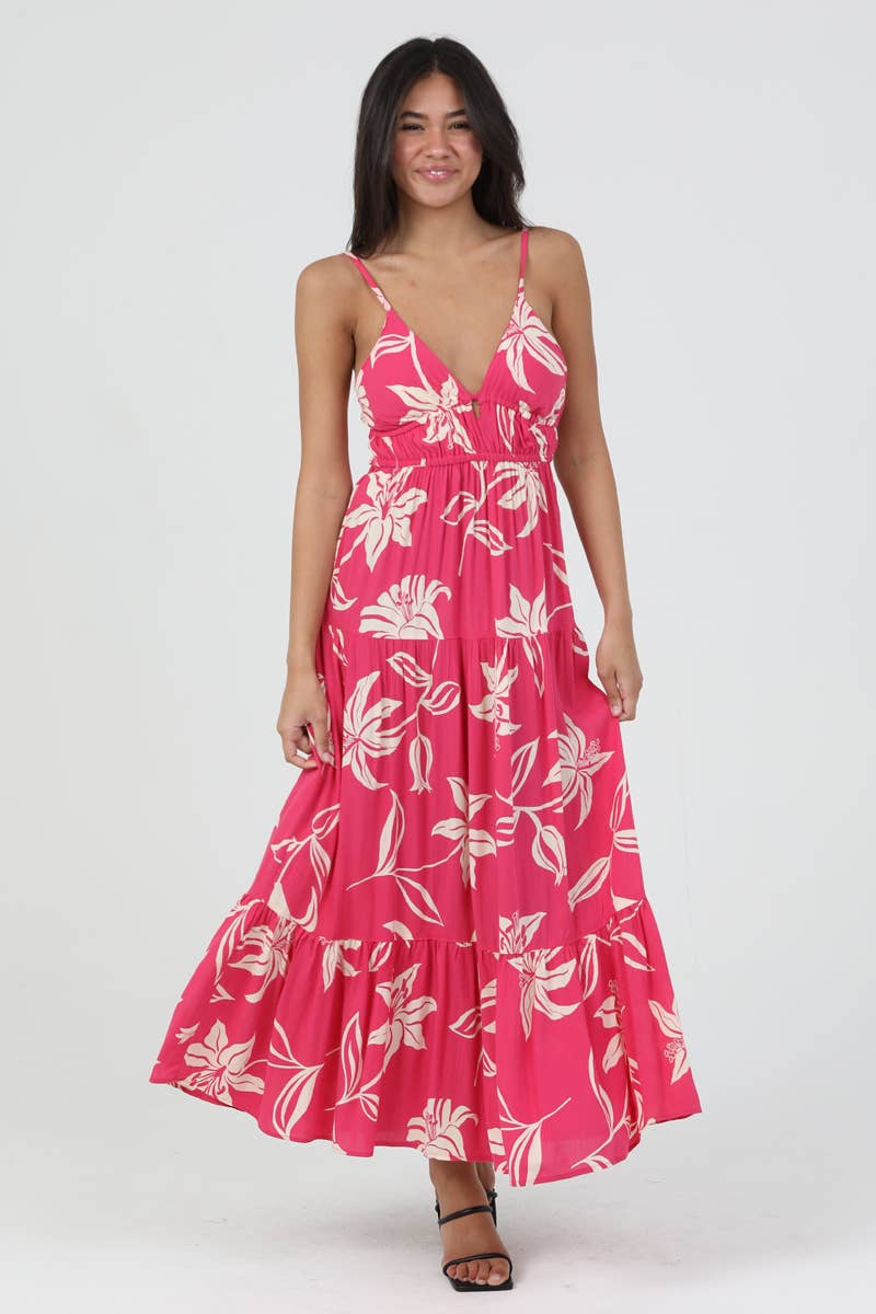F4F72-W921 V NECK OPEN BACK MAXI DRESS: Green