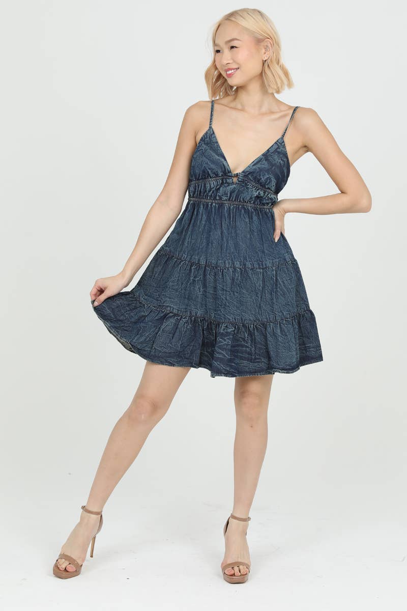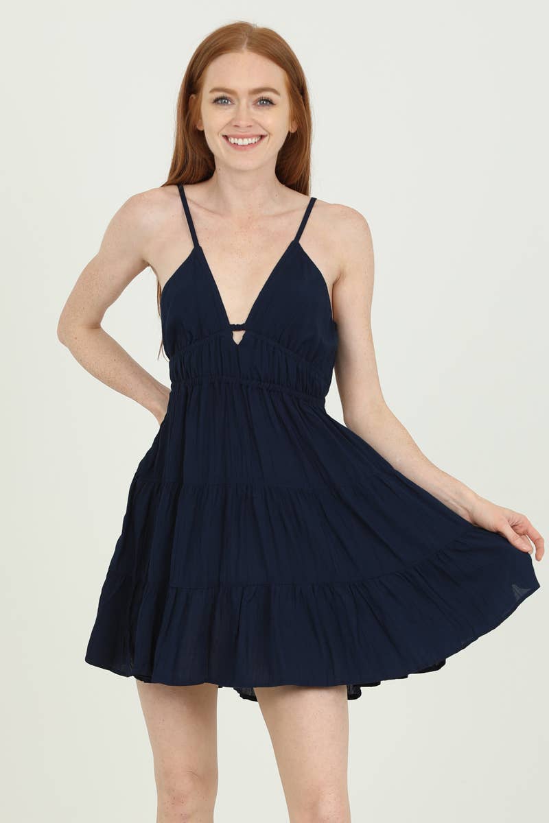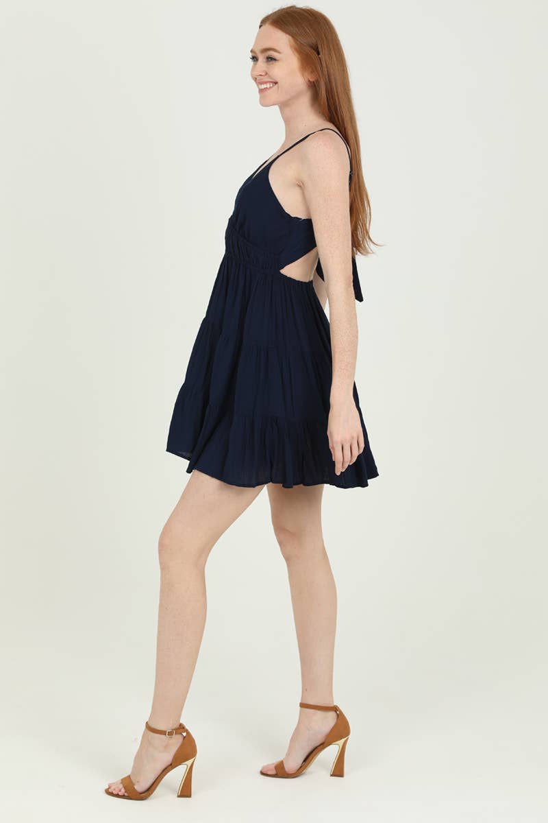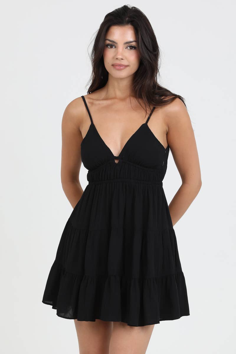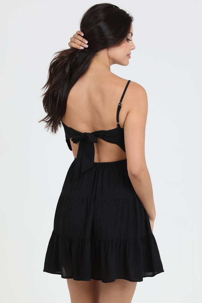 F4H12-ASIS V NECK OPEN BACK SUNDRESS: Black