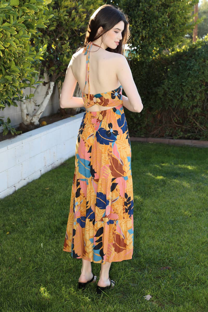 F4H50-A861 V NECK HALTER MAXI DRESS WITH RING BACK DETAIL