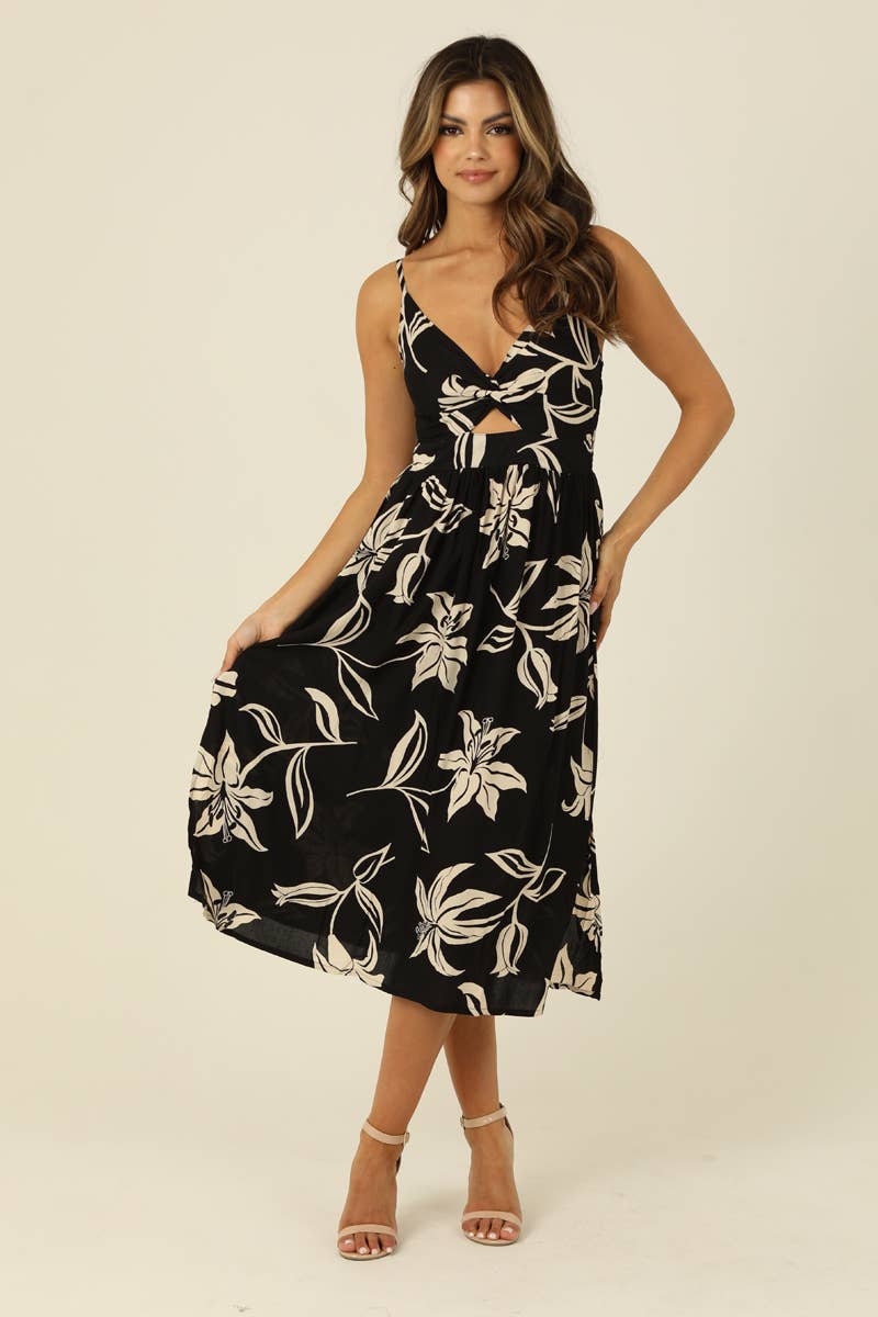 F4J10-W921 TWIST FRONT CUTOUT MIDI DRESS