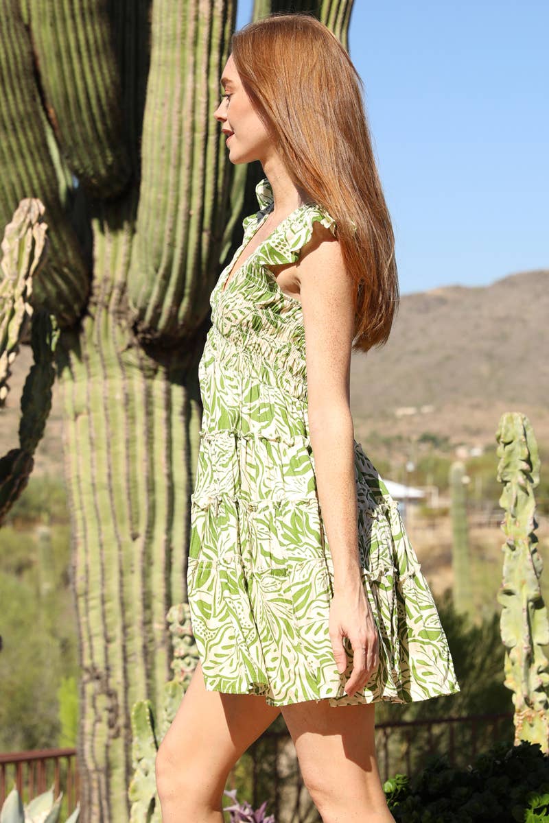 V NECK SMOCKED BUST FLUTTER SLEEVE TIERED DRESS