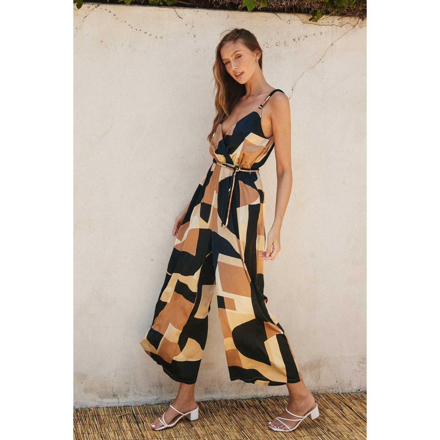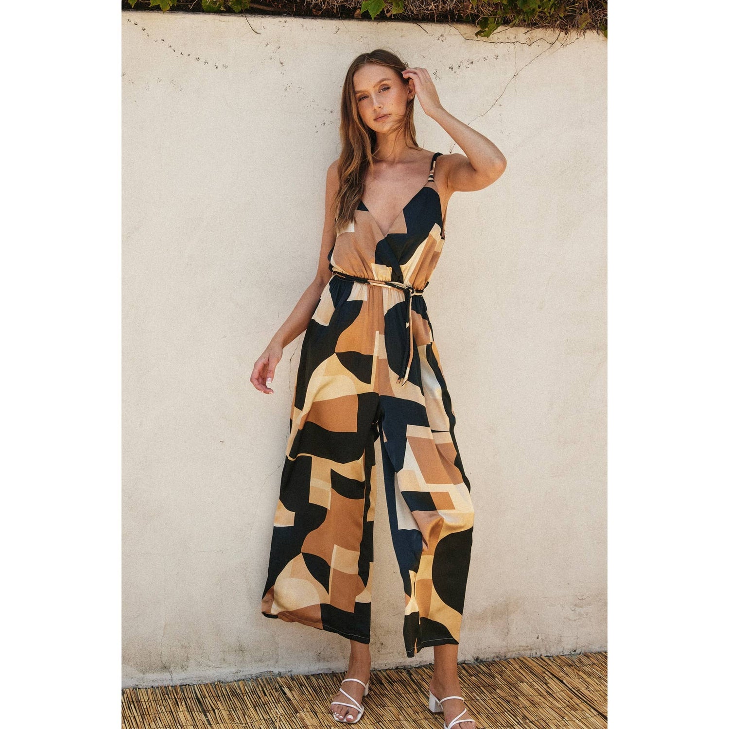 Printed surplice wide leg jumpsuit. Model is 5'10" and wearing size Small.