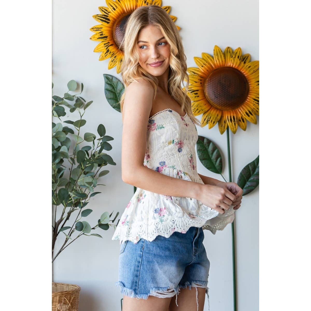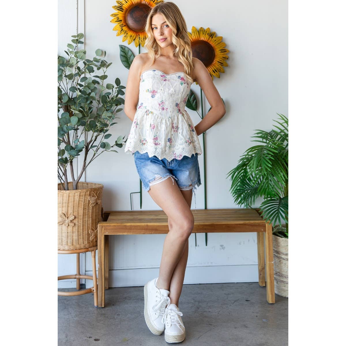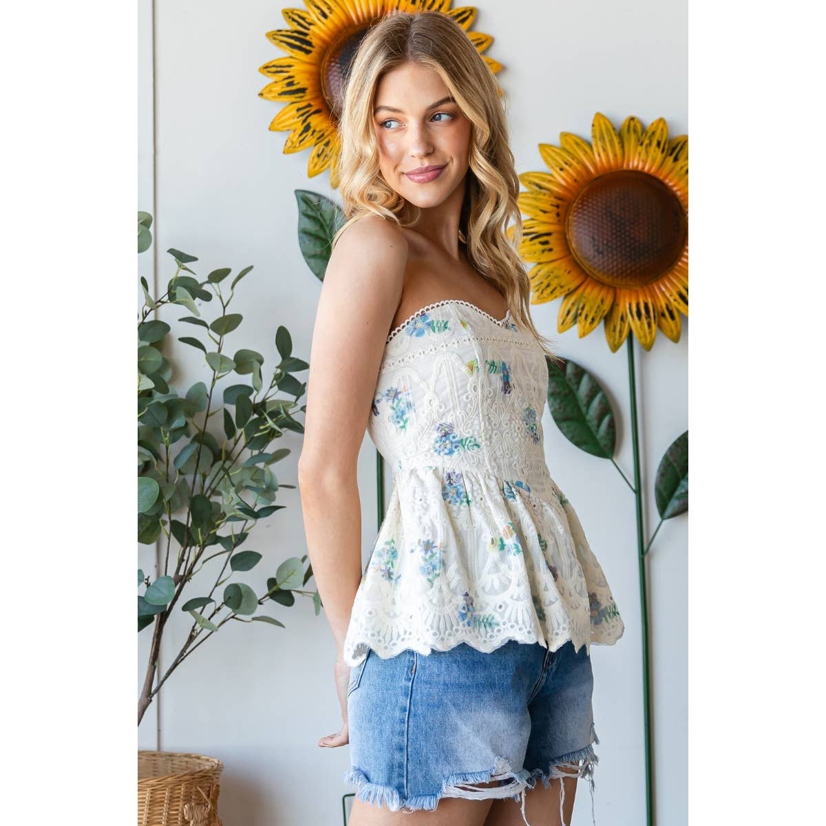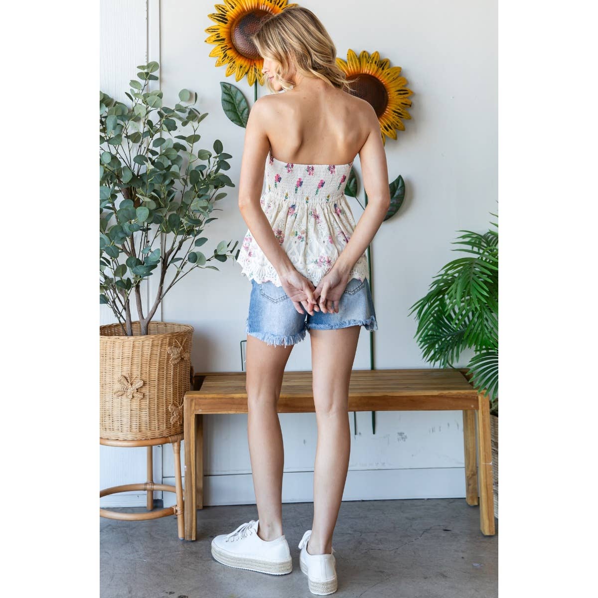 Flower Printed Lace Tube Top: Blue Combo / VT71968-B1