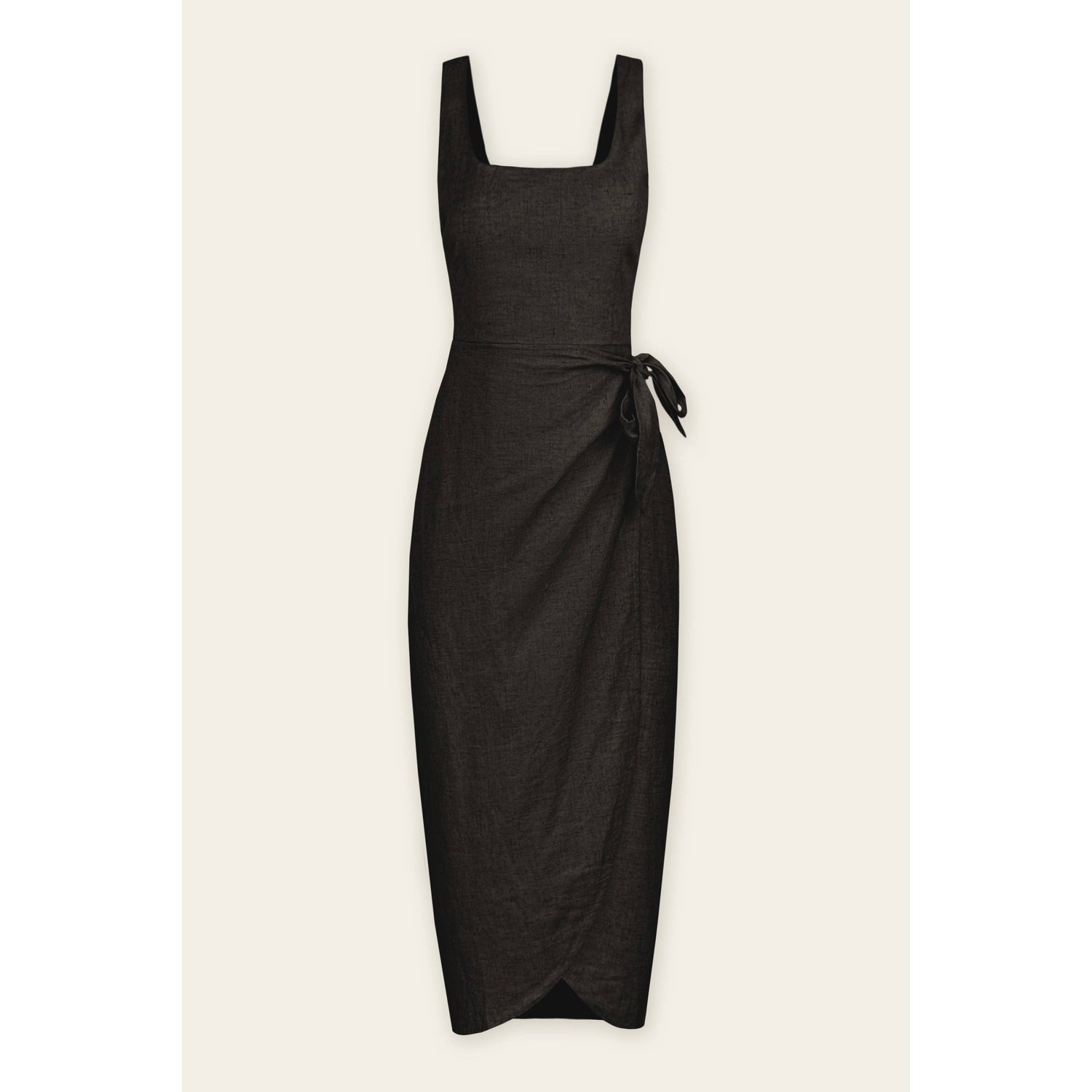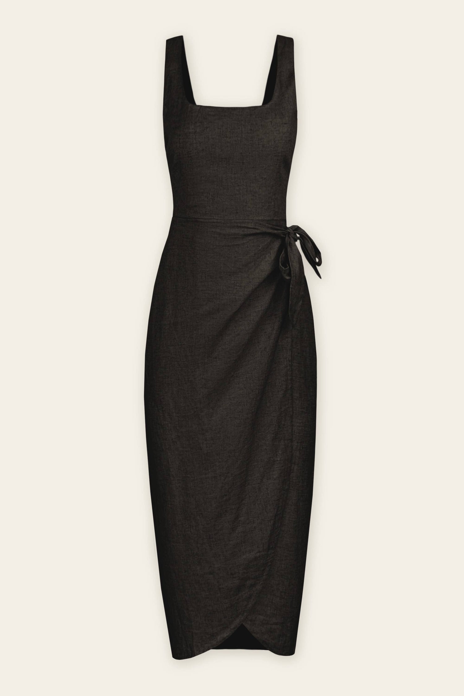 Heaven Sent Tulip Hem Midi Wrap Dress : BLACK / FD11527-P1465