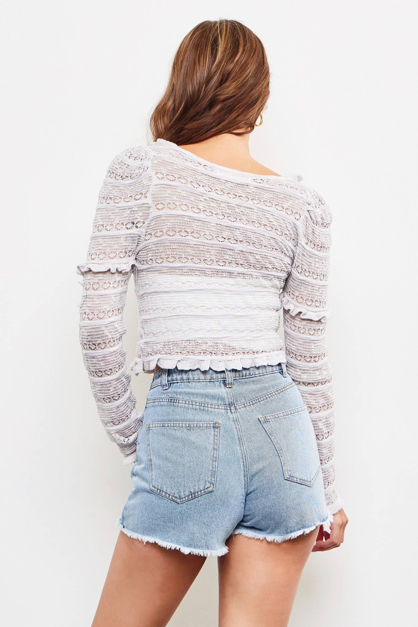 HOLLOW RUFFLE KNIT TOP: LT.GREY / S23237