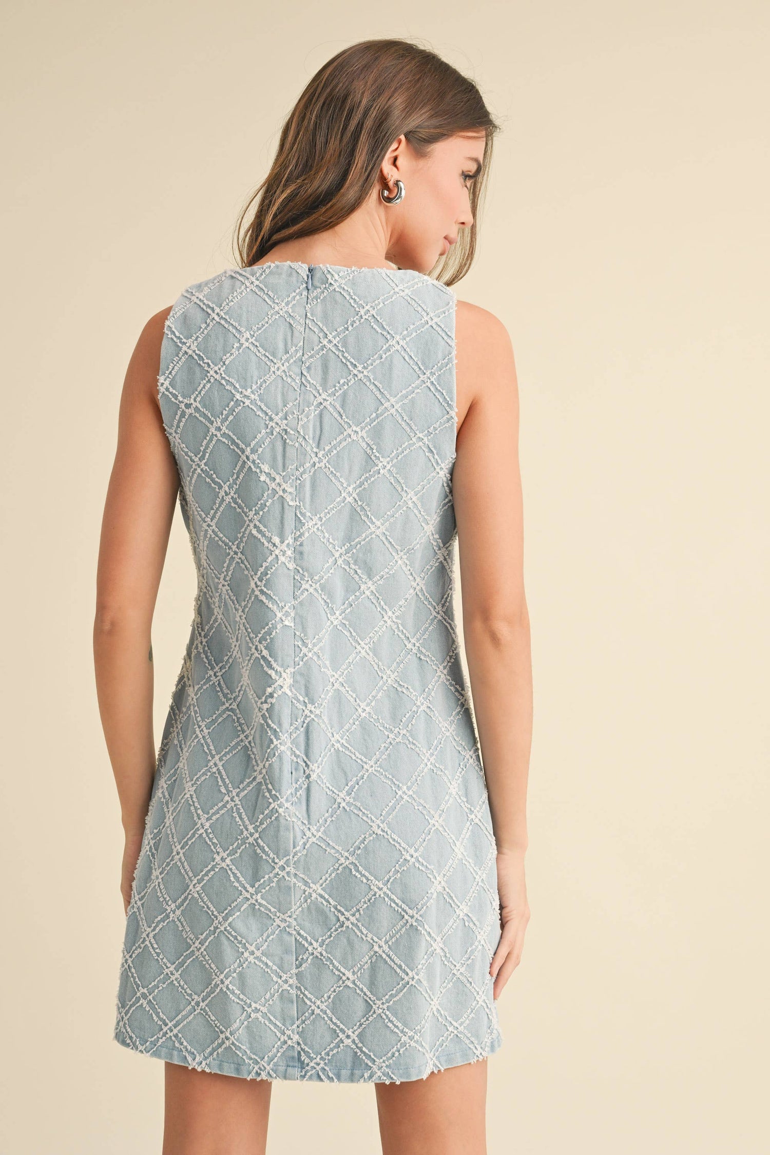 SLEEVELESS SQUARE NECK TEXTURED DENIM MINI DRESS