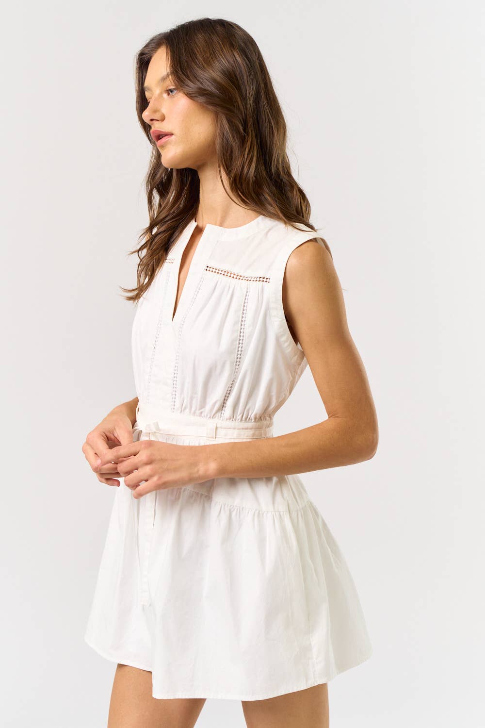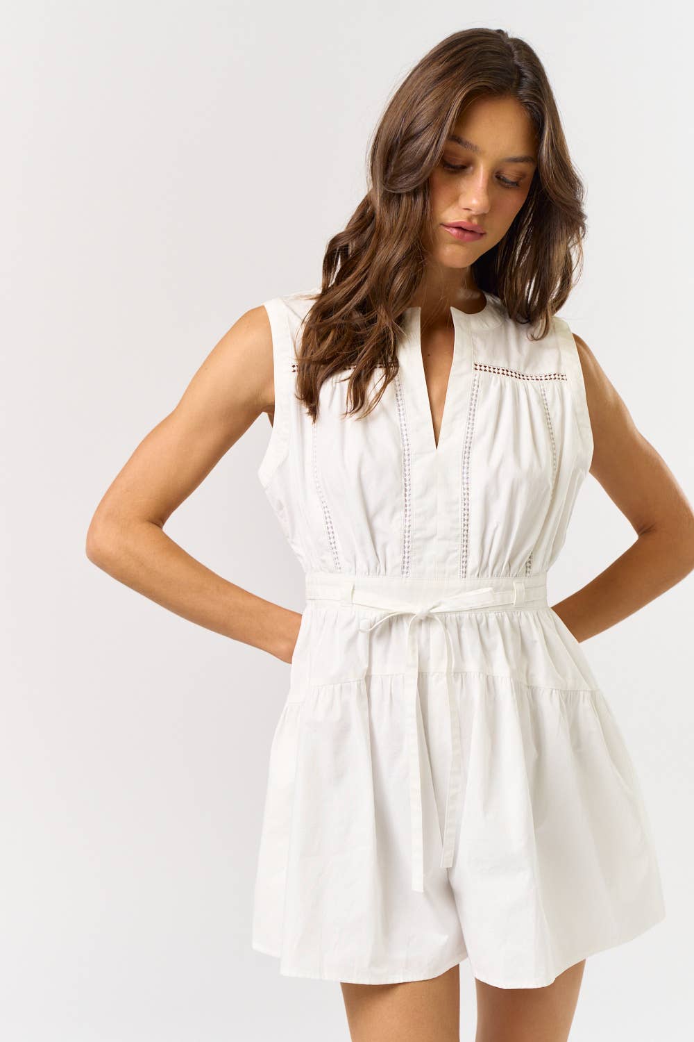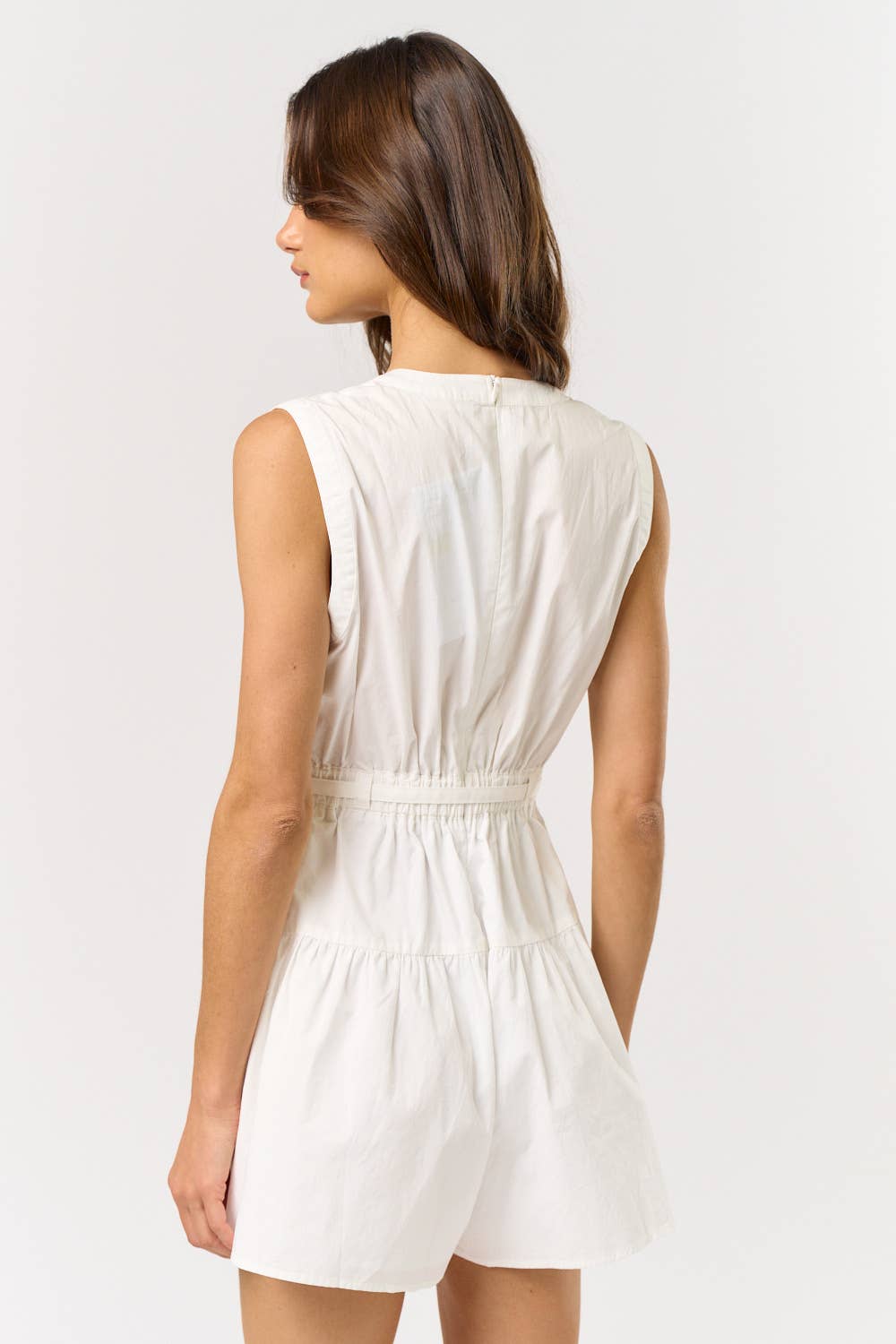 ILR5252 SLEEVELESS WAIST TIE ROMPER : OFF WHITE