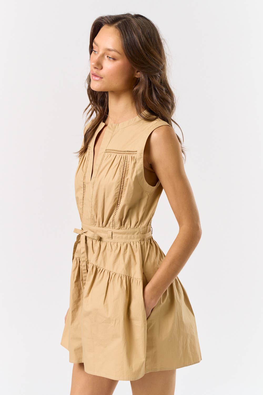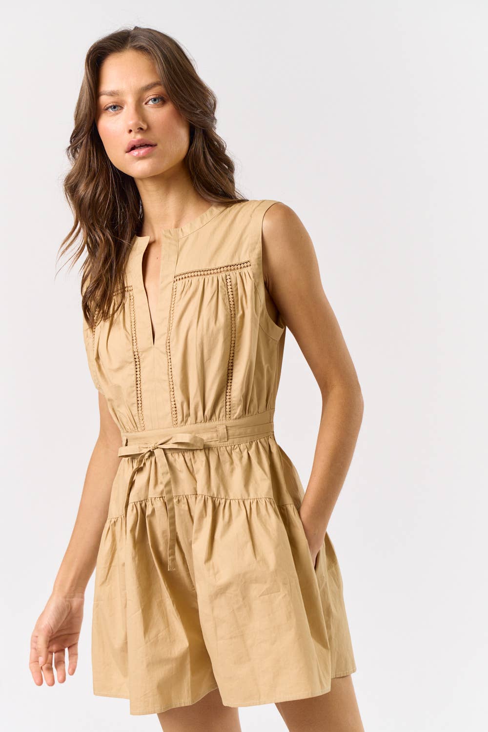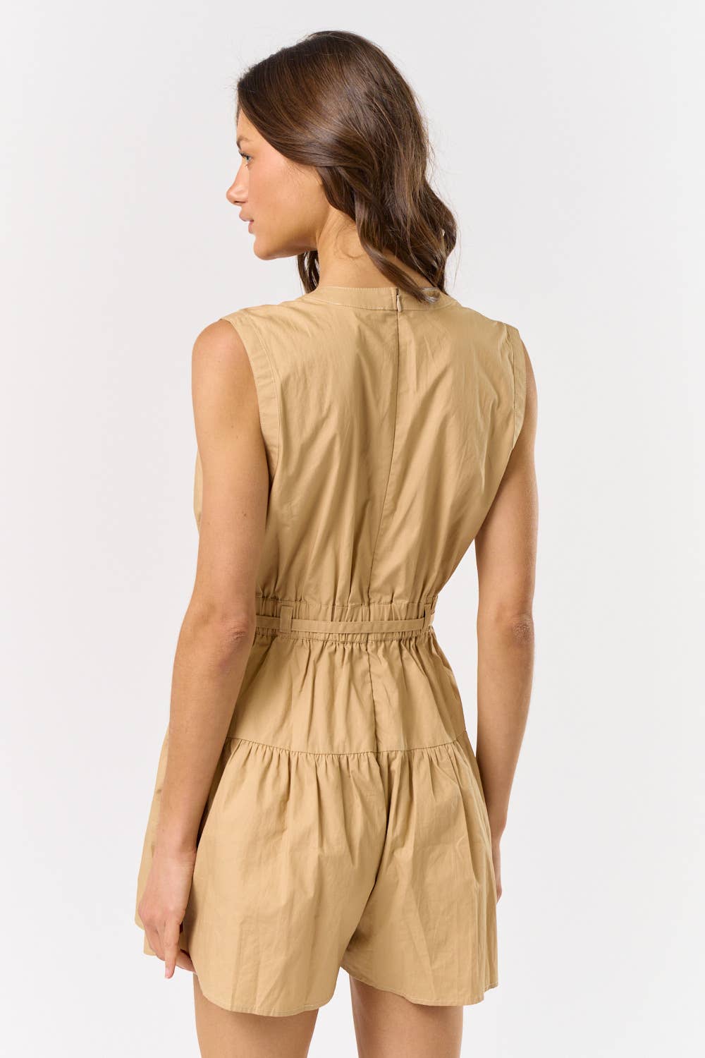 ILR5252 SLEEVELESS WAIST TIE ROMPER : OFF WHITE