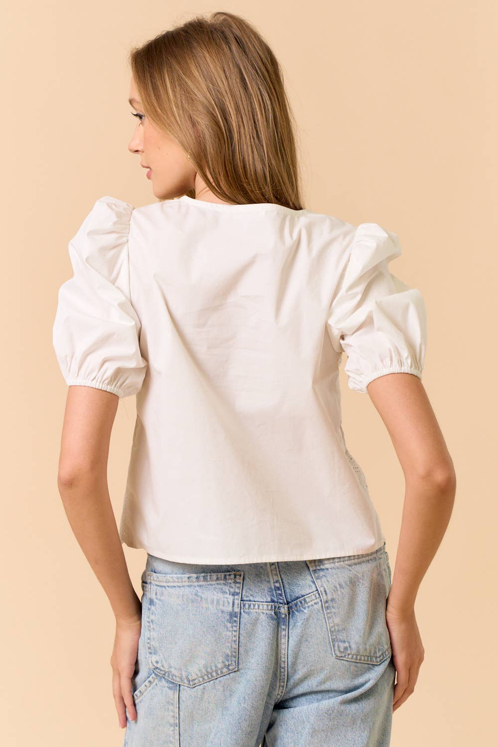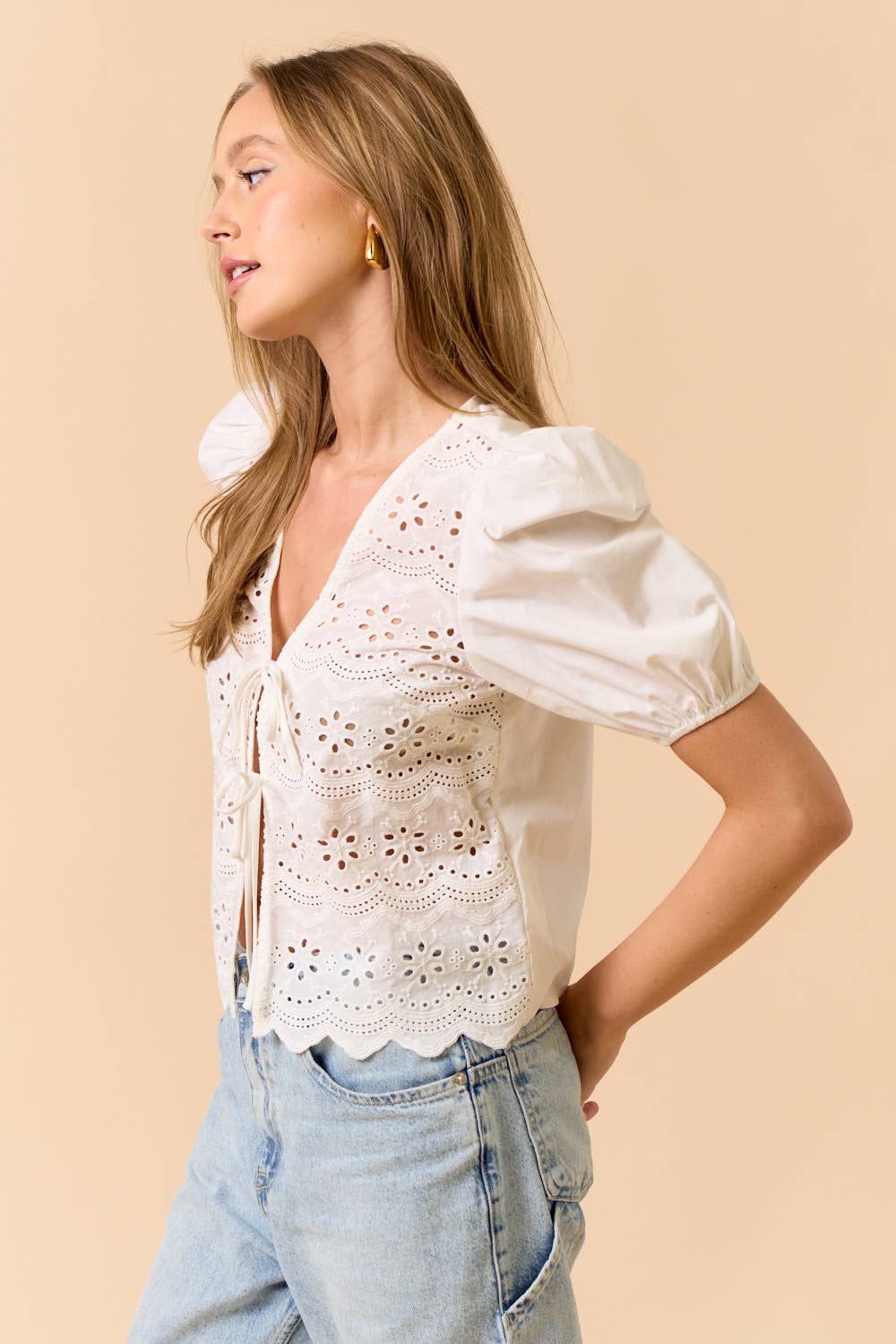 ILT5917 PUFF SLEEVE EYELET TOP: Off-White