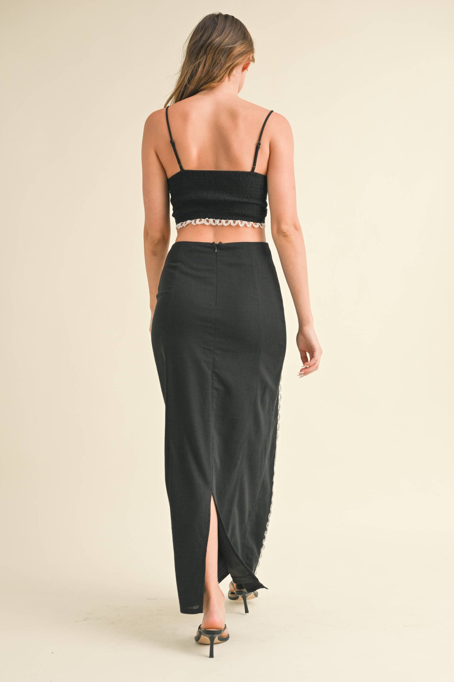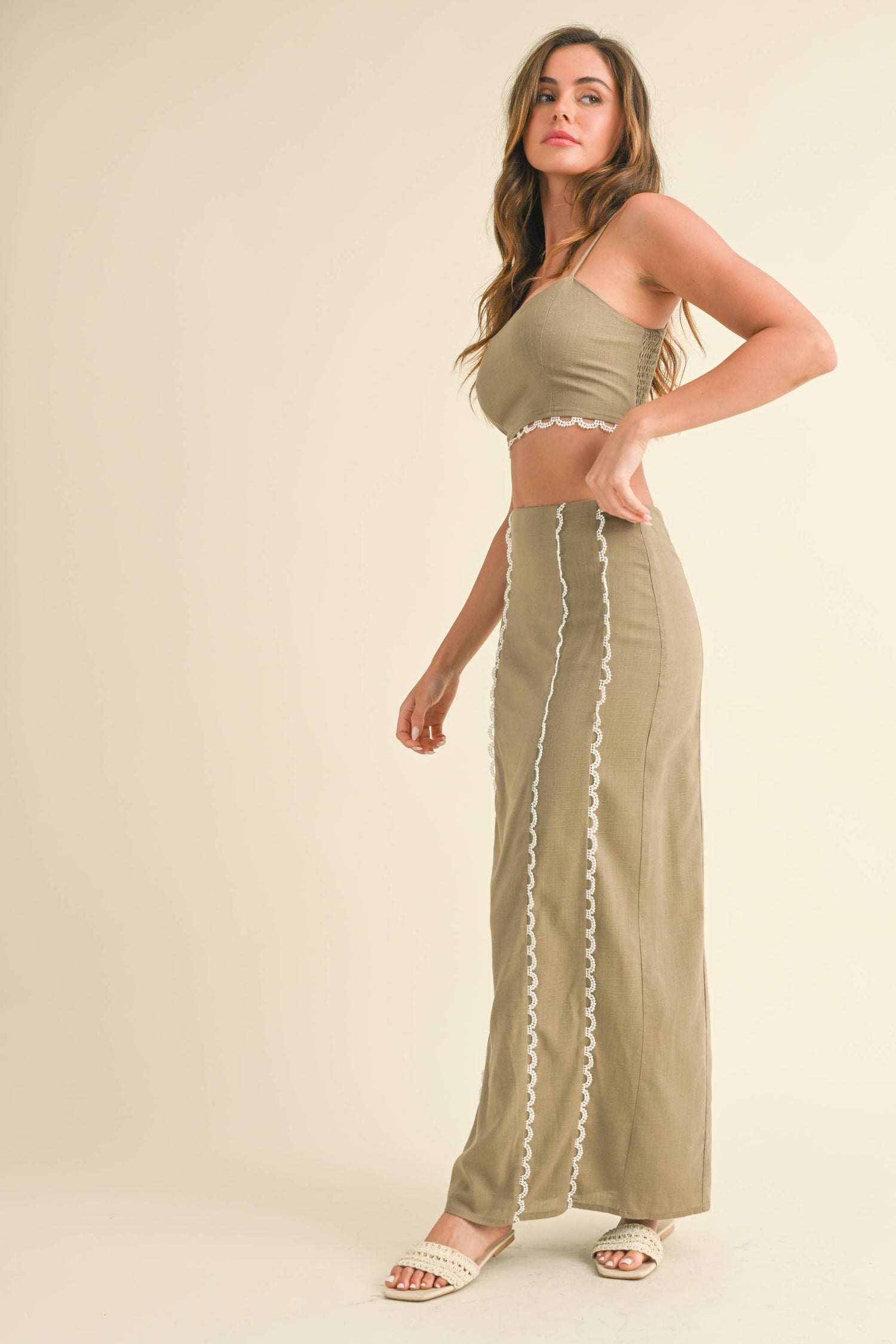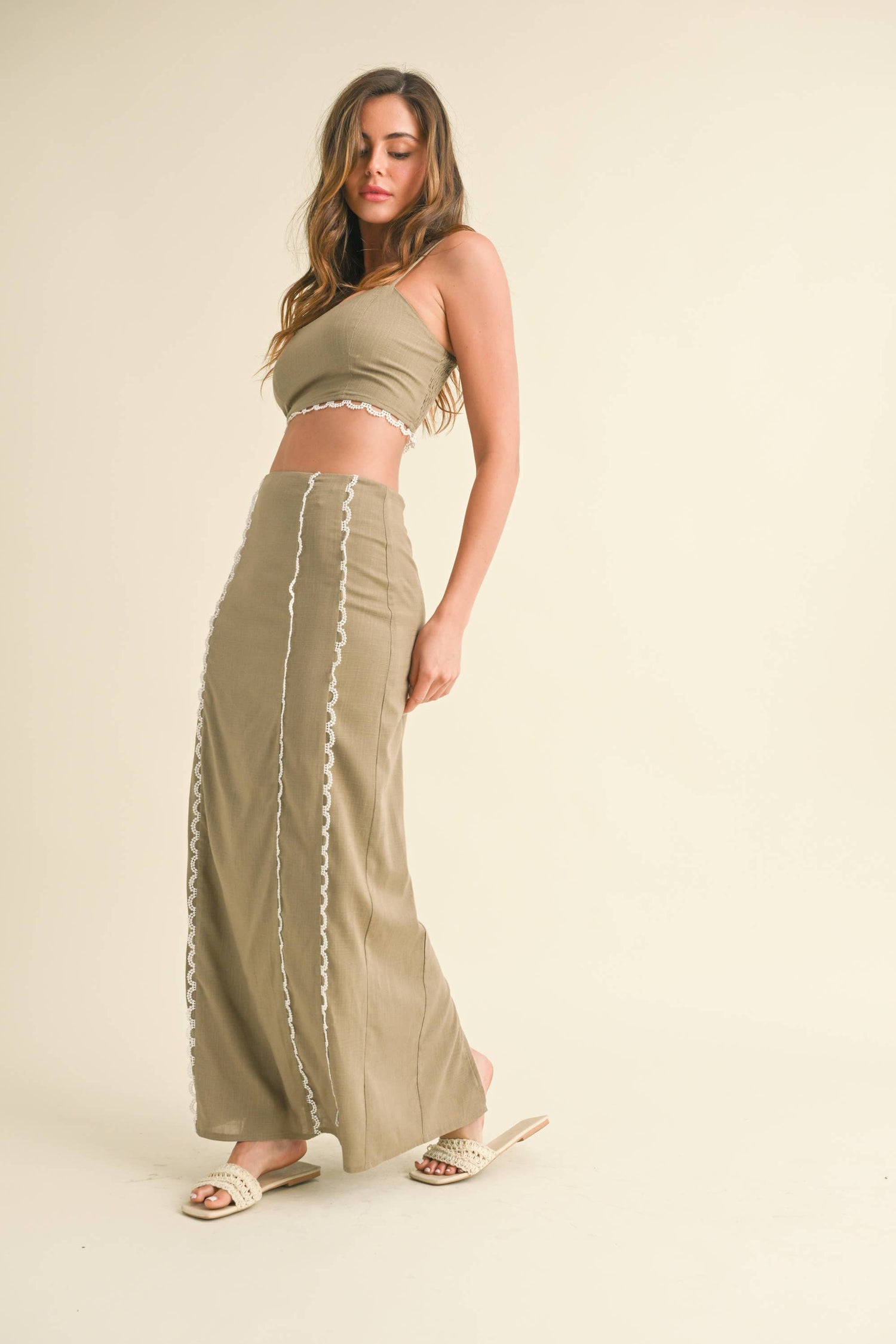 LINEN CROP TOP AND MAXI PENCILSKIRT SET WITH LACE TRIM