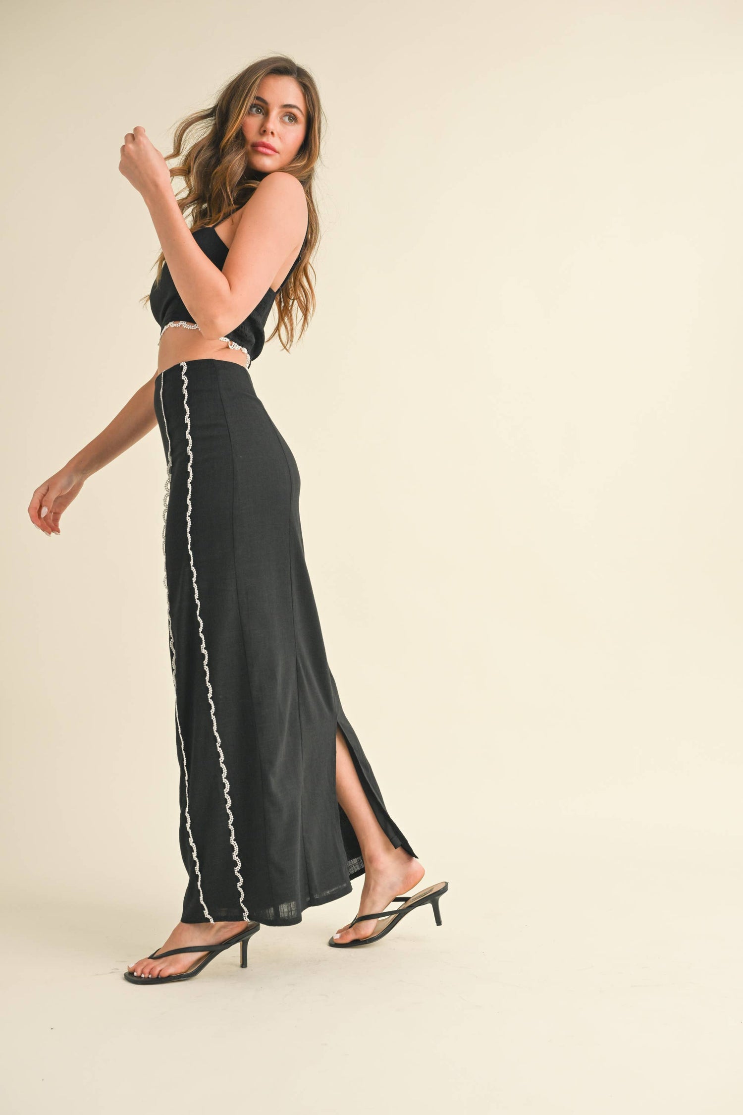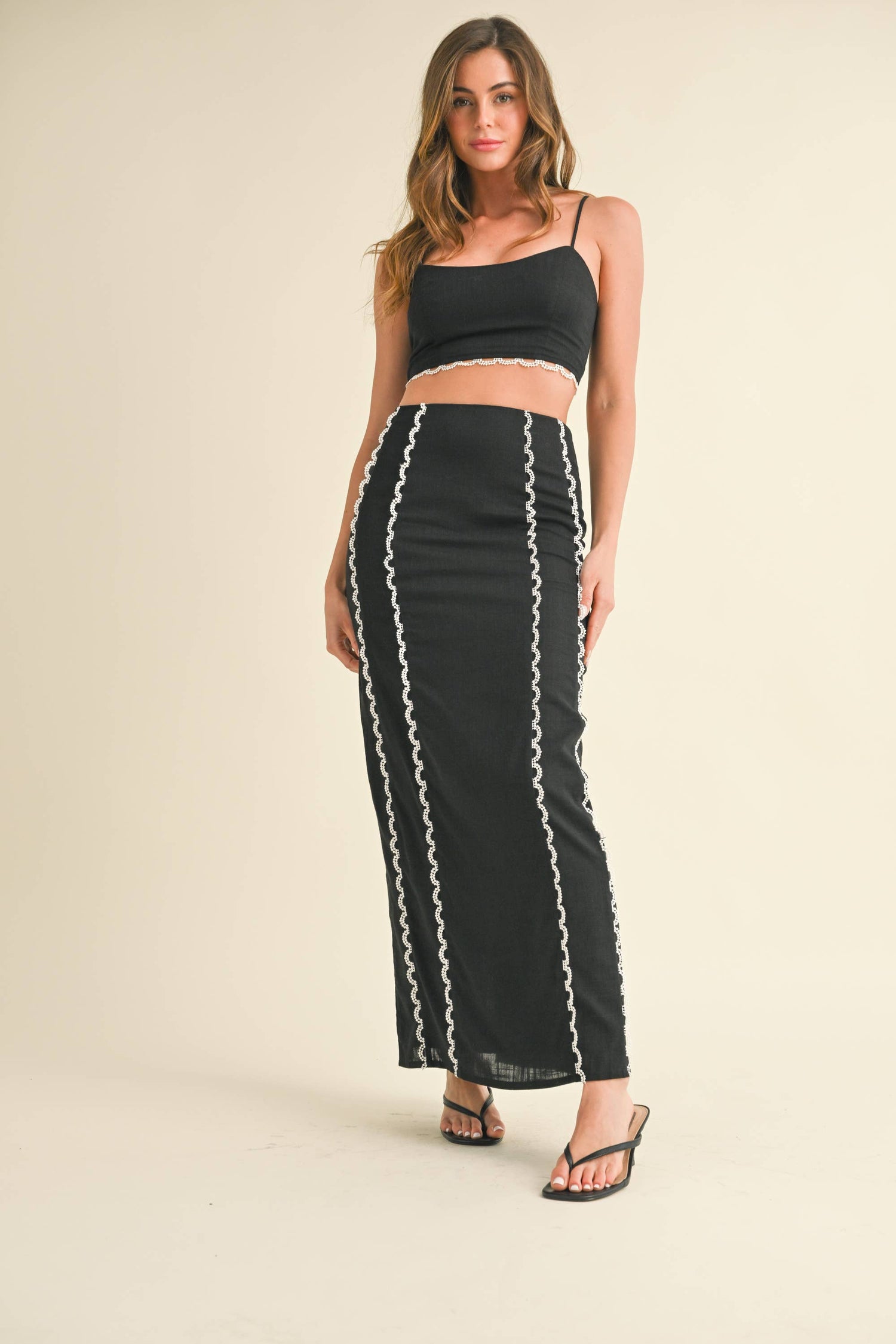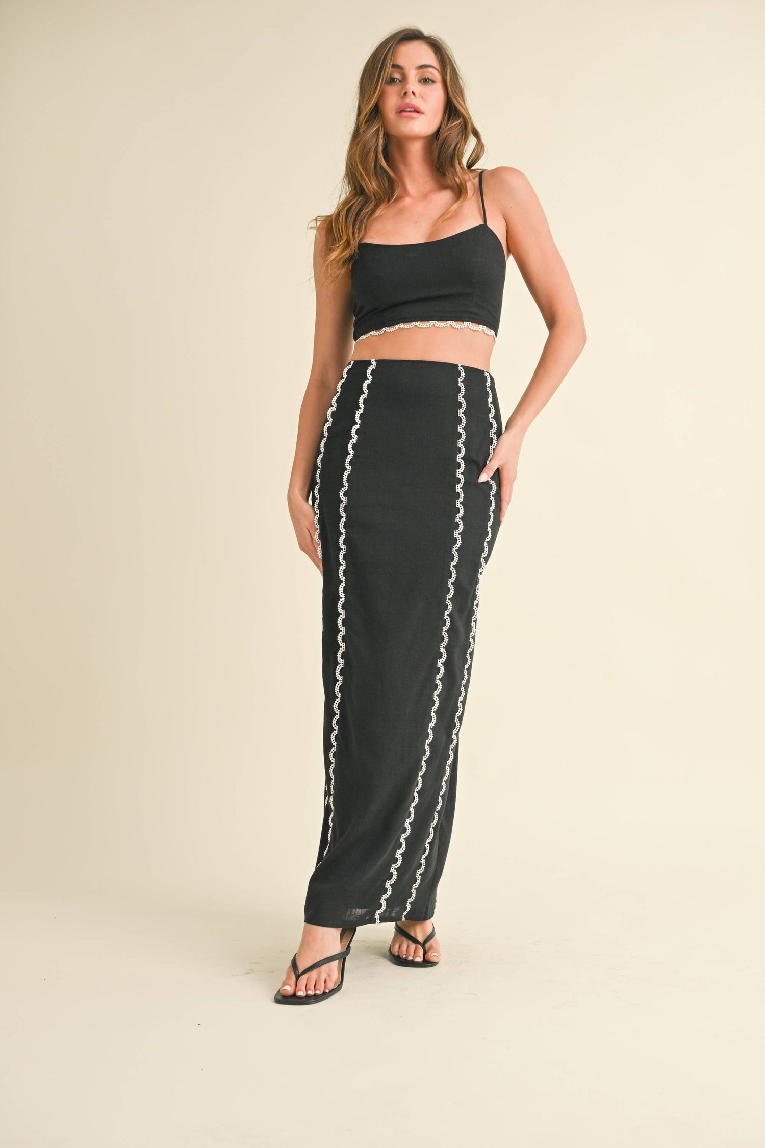LINEN CROP TOP AND MAXI PENCILSKIRT SET WITH LACE TRIM