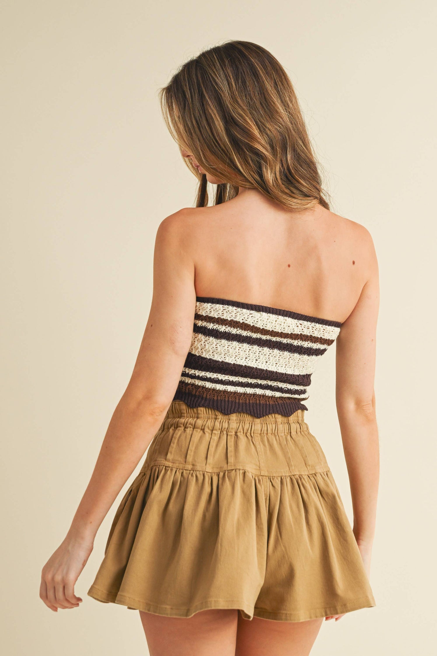IT4165 TUBE STRIPES SWEATER TOP: BROWN COMBO
