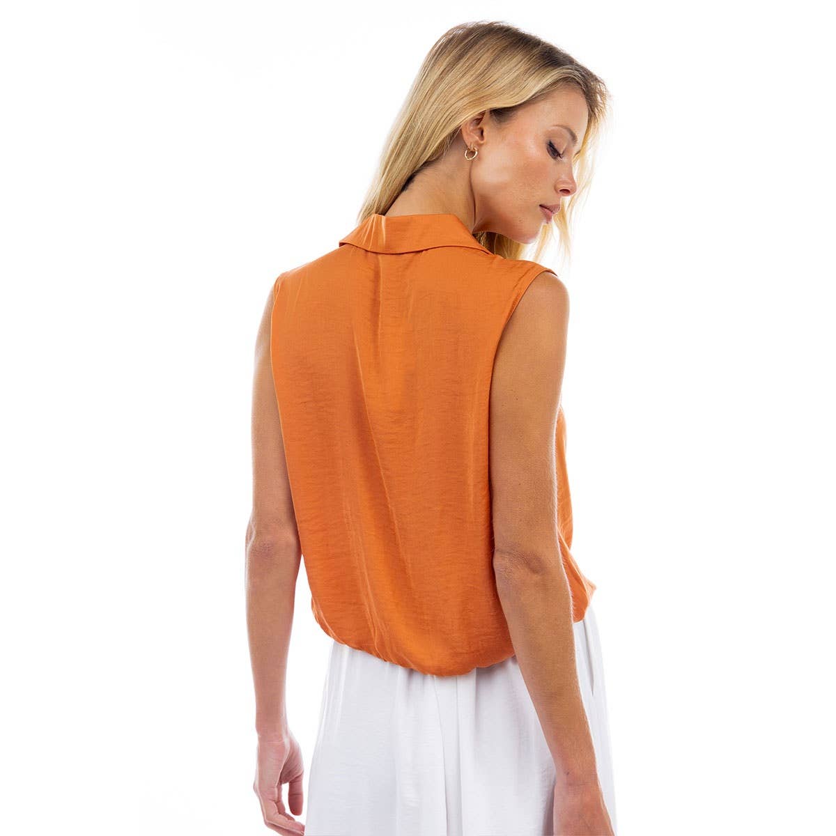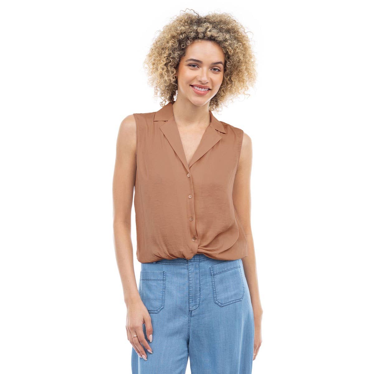 Knotted Sleeveless Collared Top: Papyrus / ET119375A-F