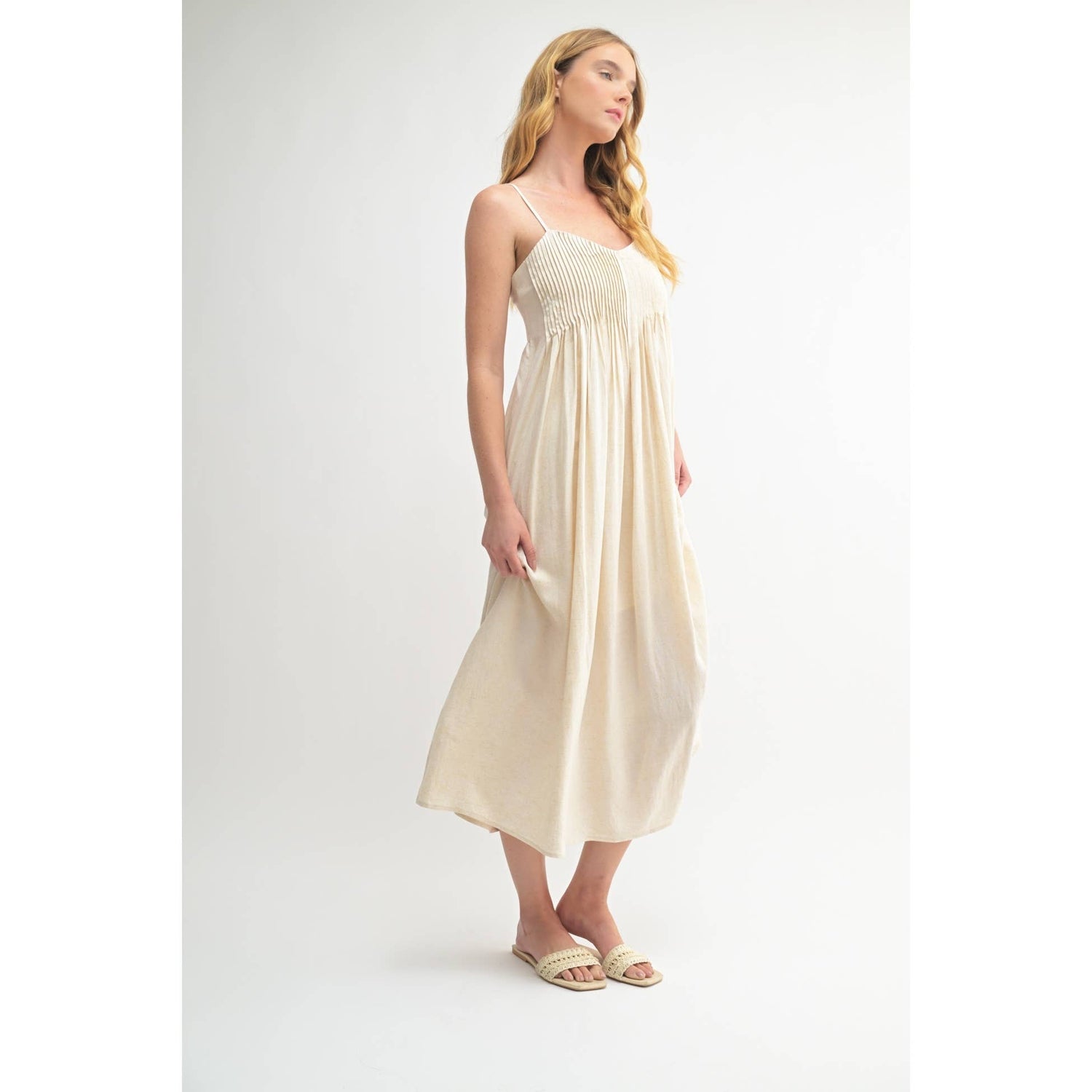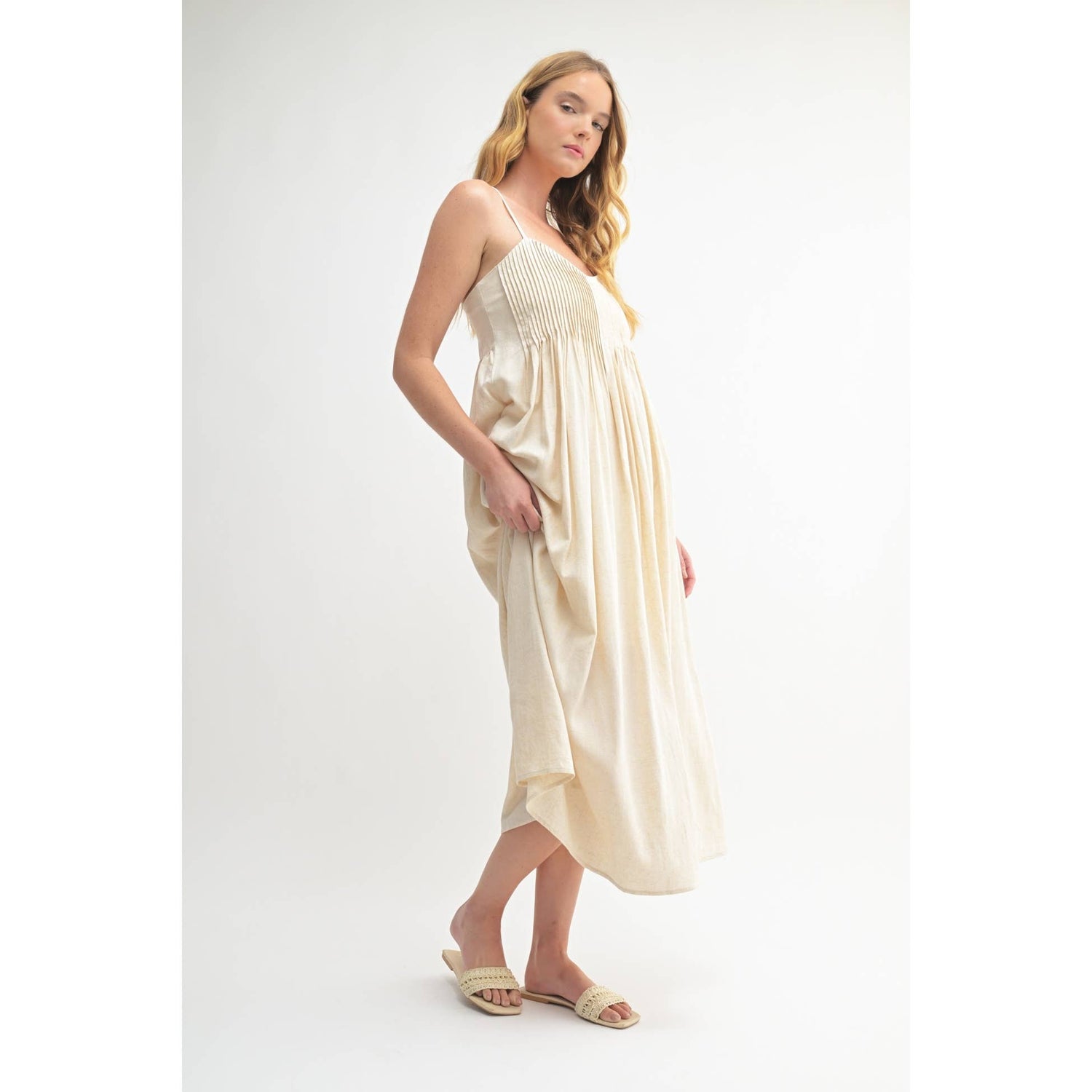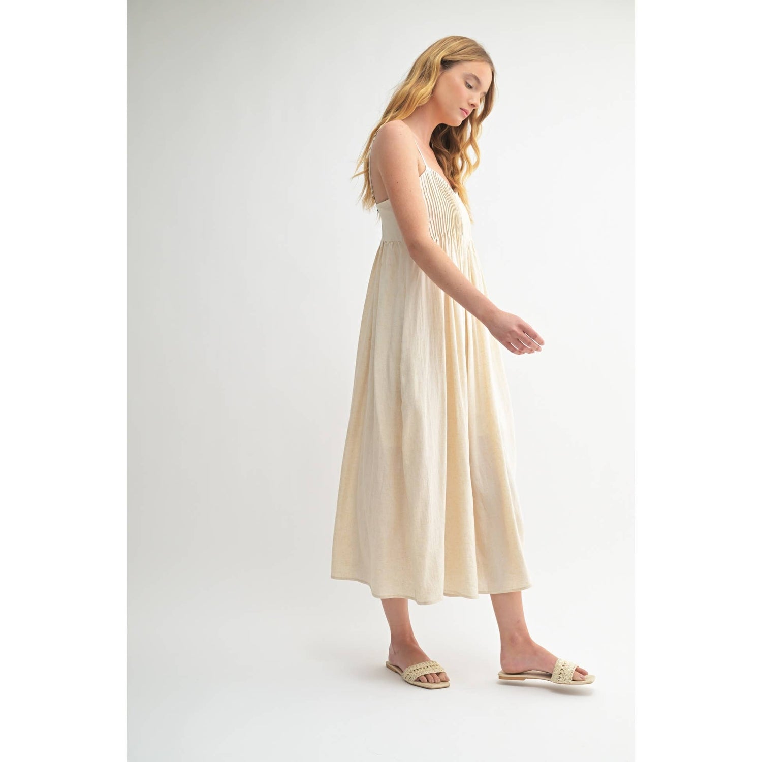 LINEN BLEND PINTUCK DRESS: Natural / FD68516_3