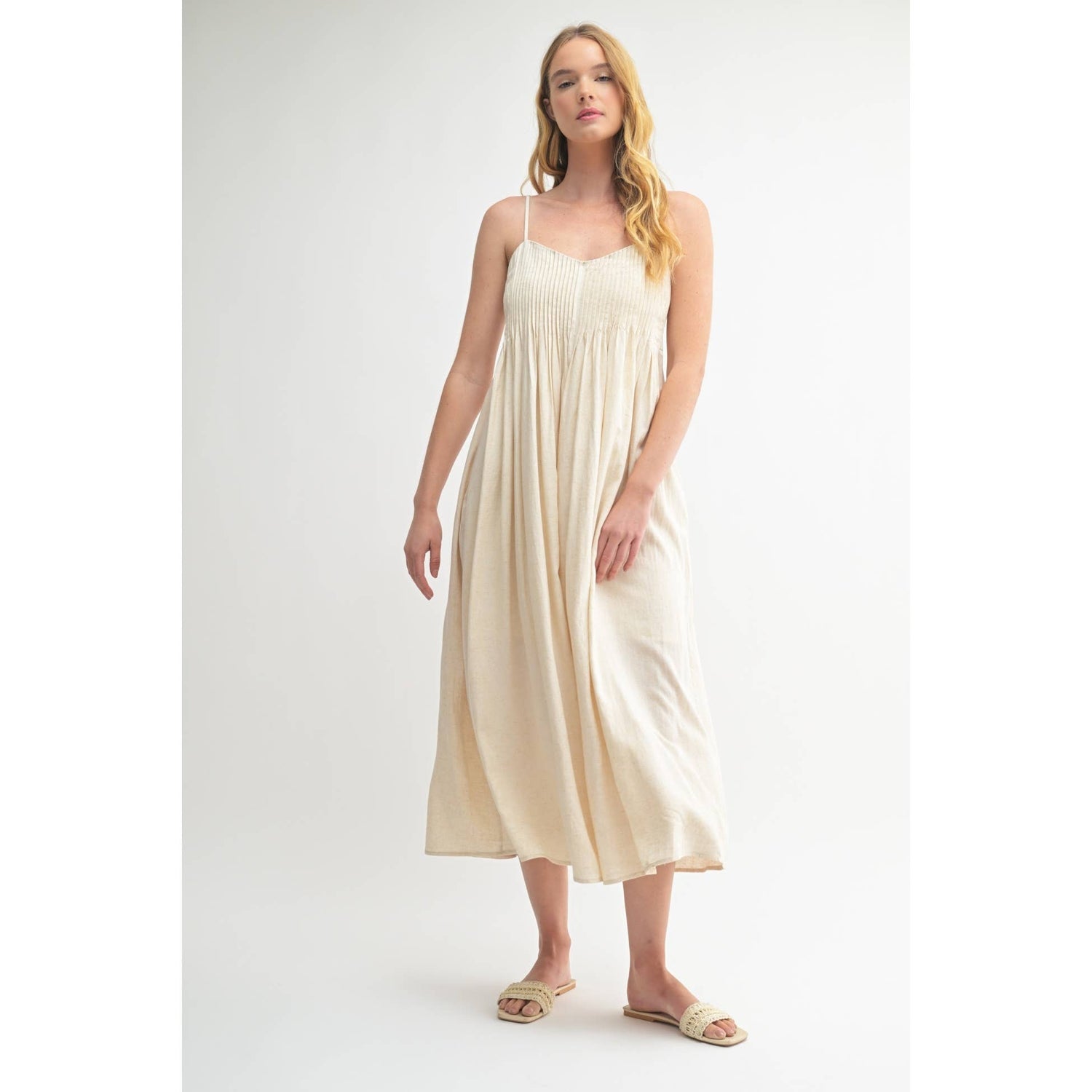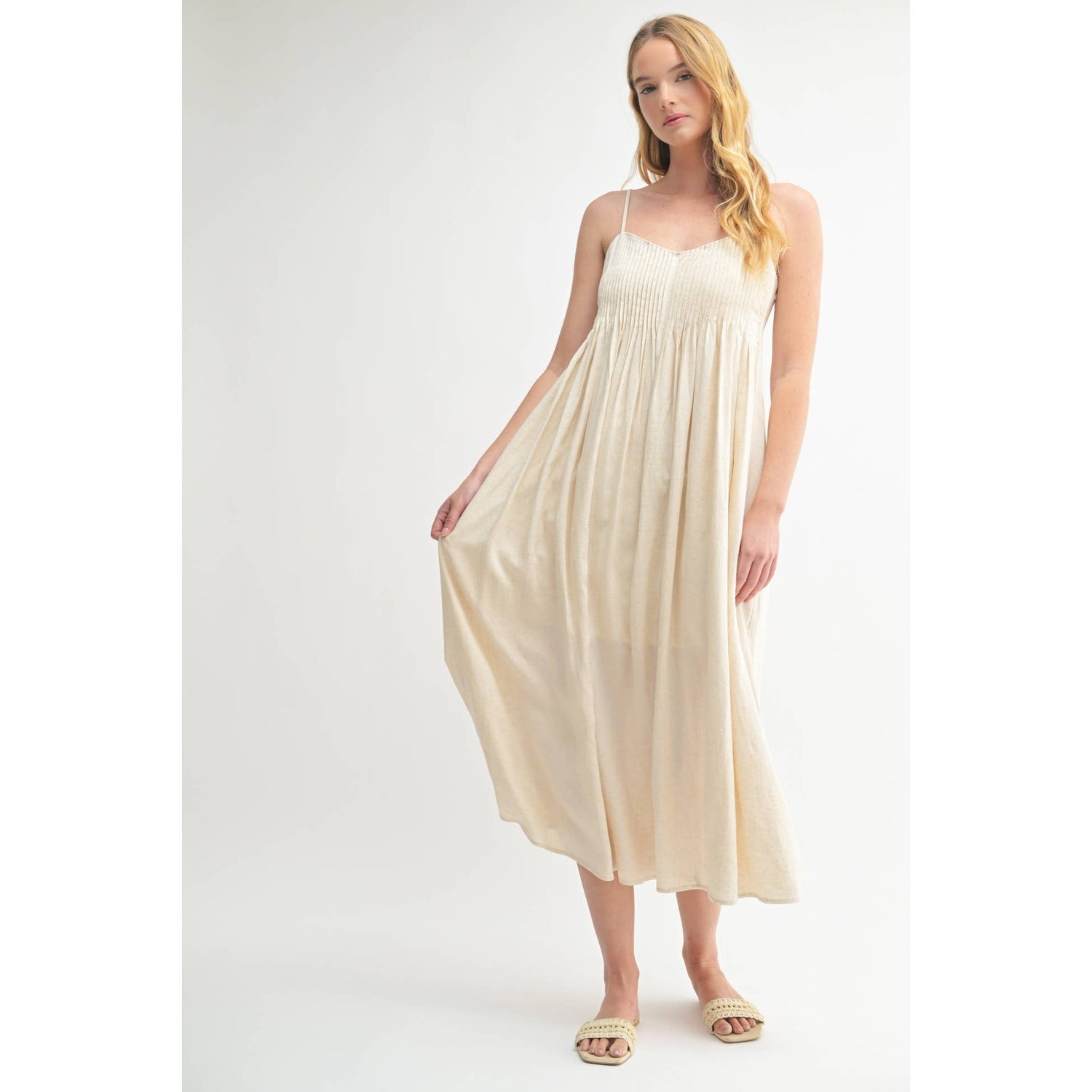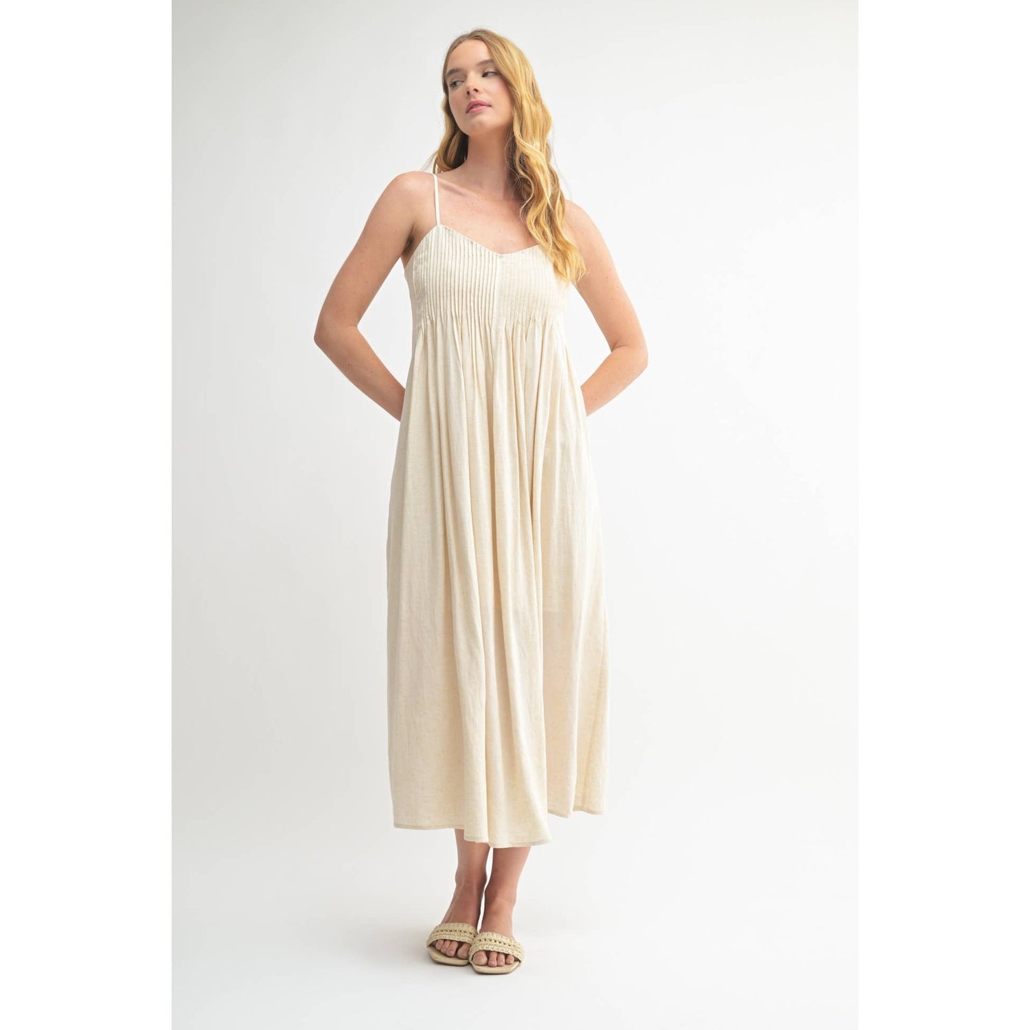 LINEN BLEND PINTUCK DRESS: Natural / FD68516_3