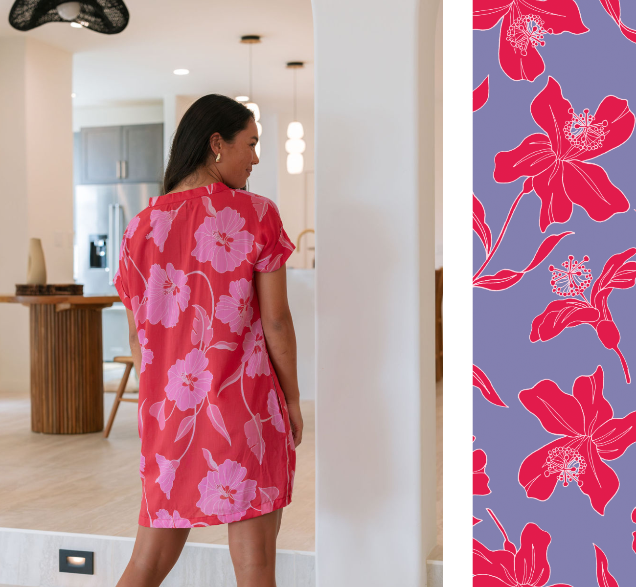 The Momi Dress is casual yet elevated. It is a shorter version of our best-selling Tide Dress. With cuffed sleeves, a buttoned v neckline, side slits, and pockets, the Momi Dress is comfortable for every day wear, but can be dressed up for any occasion. Ethically made in Bali, Indonesia. *Please see swatch for exact color. This is part of our Merrie Monarch/Lei Day release.*