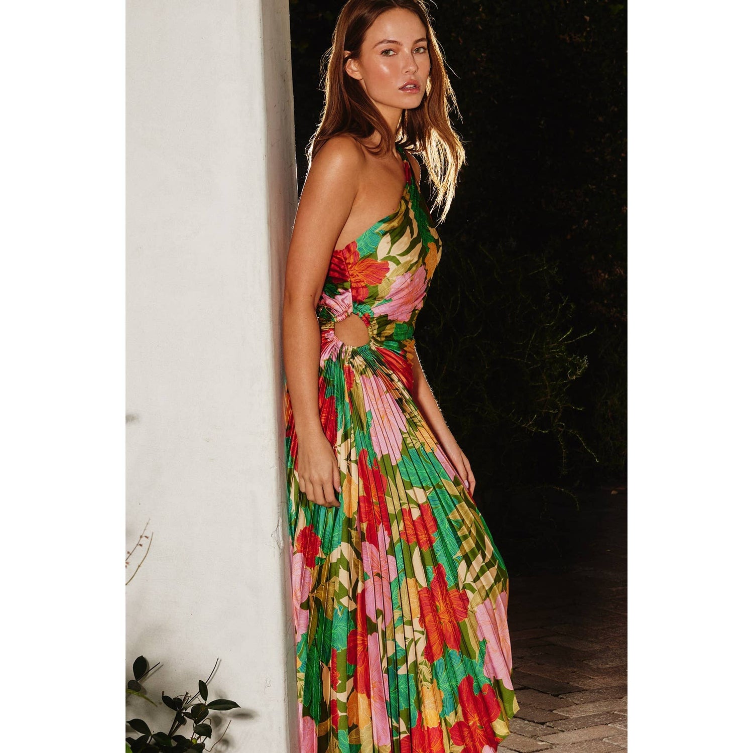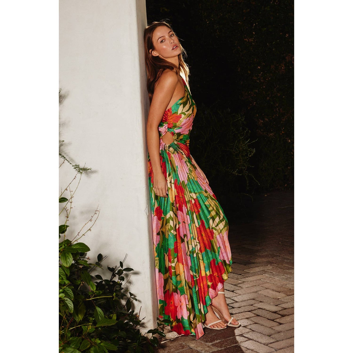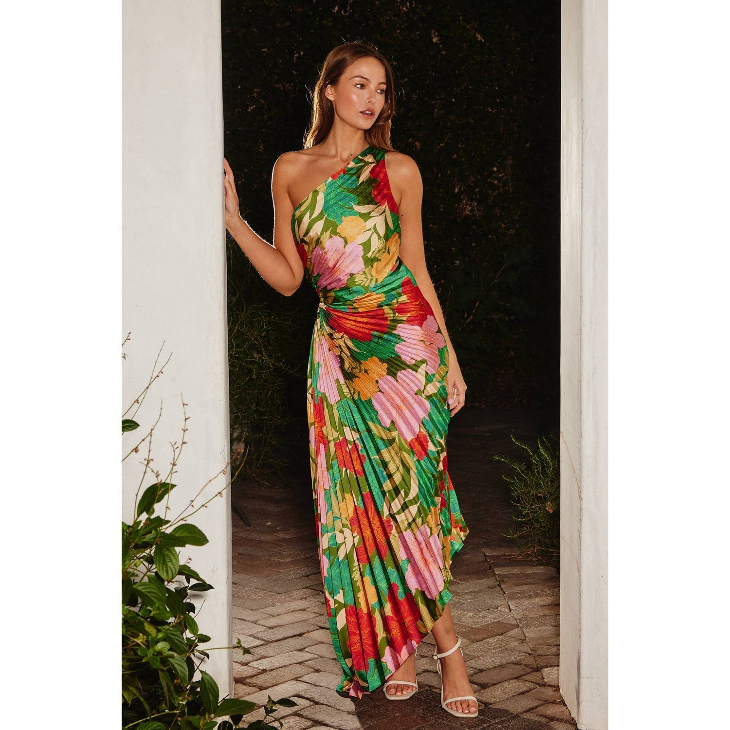 Moonstruck Asymmetrical Pleated Maxi Dress: IBIZA GARDEN / FD10589-P1312