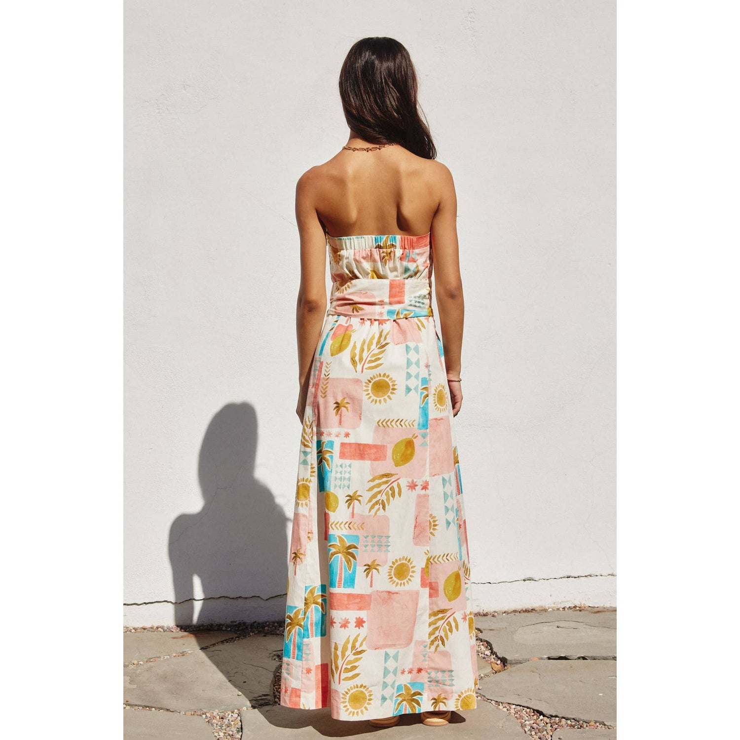 Moroccan Spring Rattan Belt Strapless Maxi Dress: AMALFI COAST / FD12672-P1900