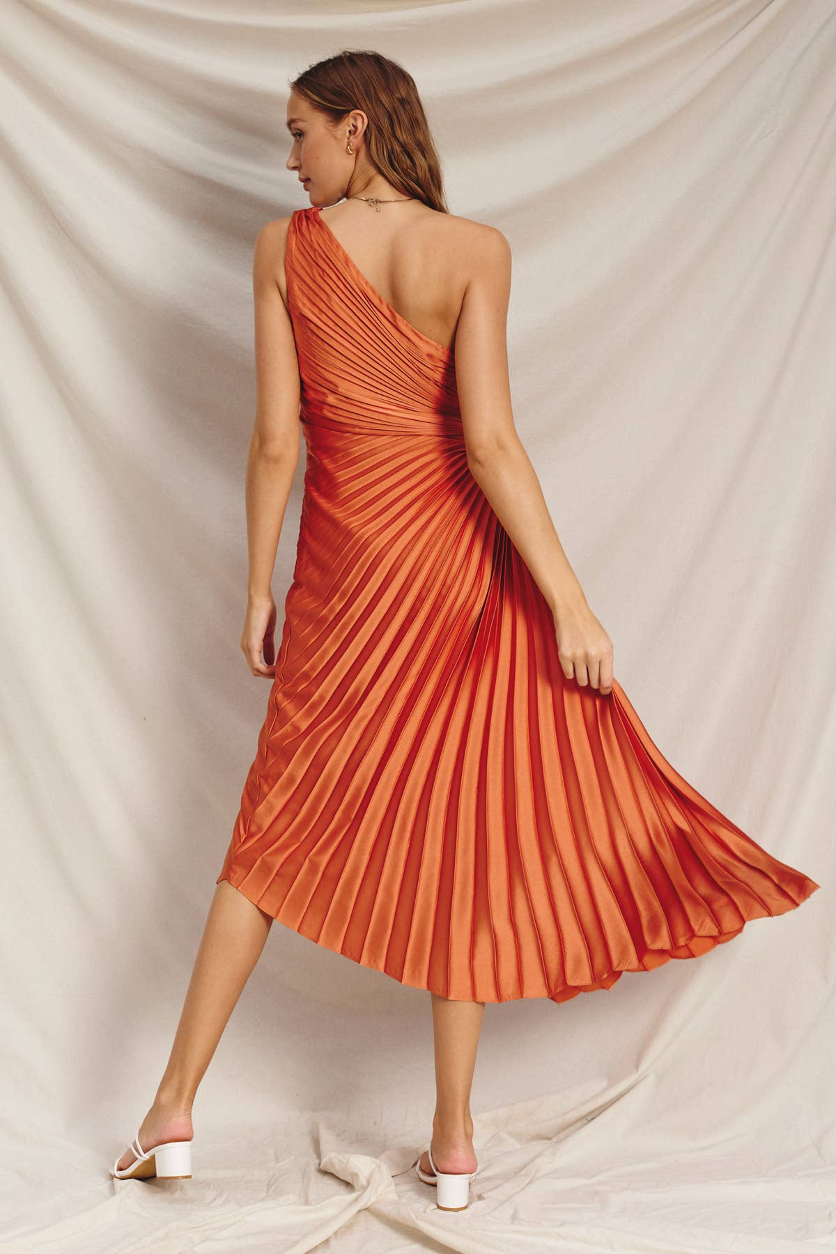 Olympia Asymmetrical Pleated Maxi Dress (1): GOLDEN OCHRE / S-M-L(3-2-1)