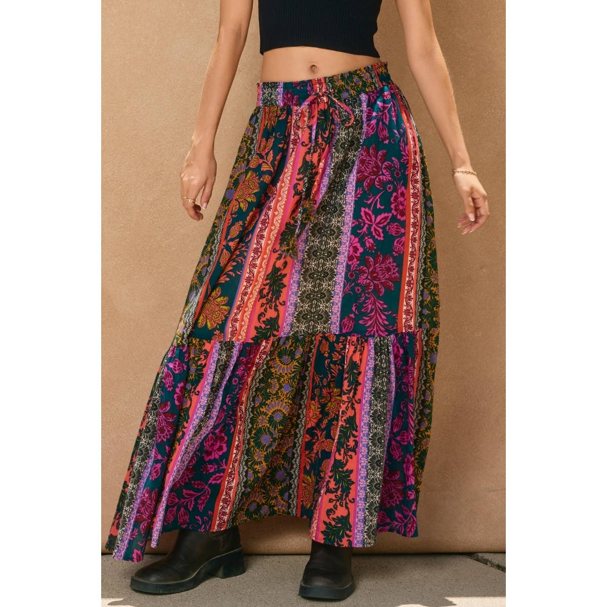 On The Road Tiered Maxi Skirt: PINE HARVEST / FS10692-P2135
