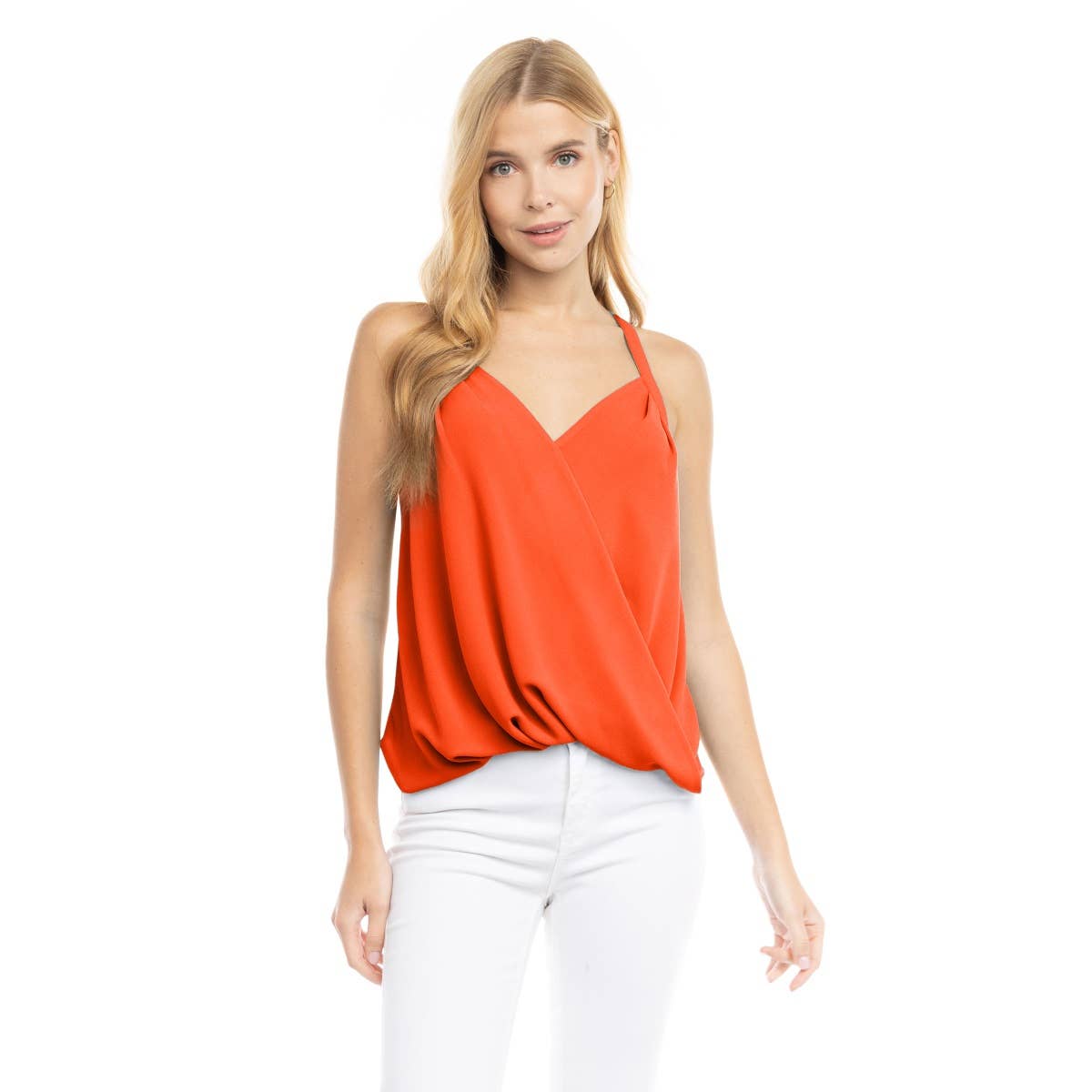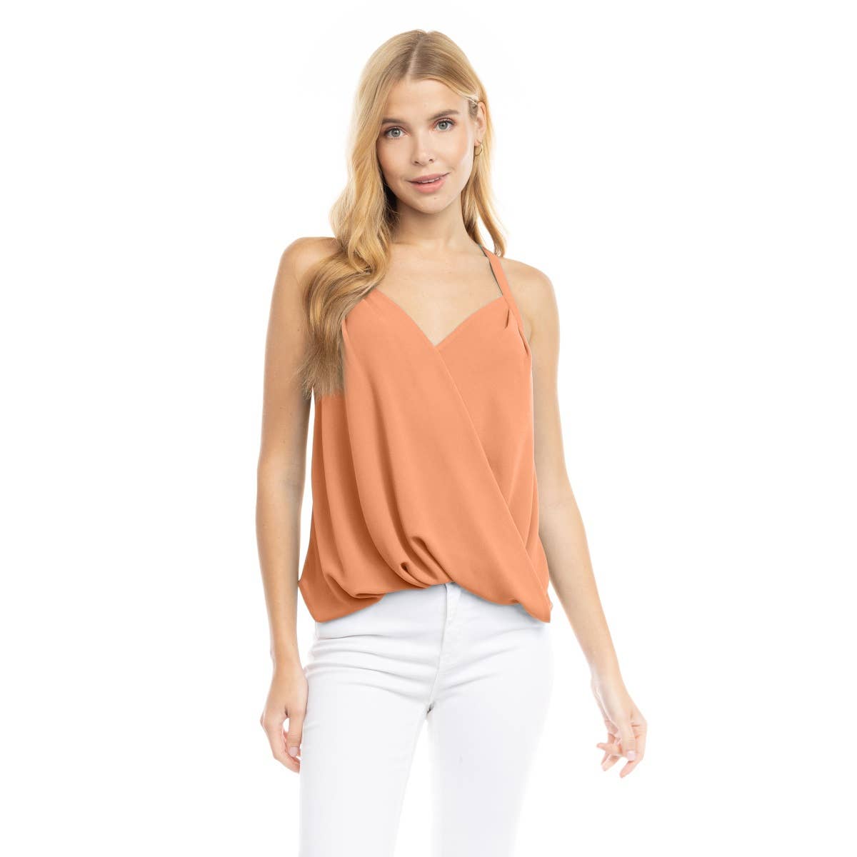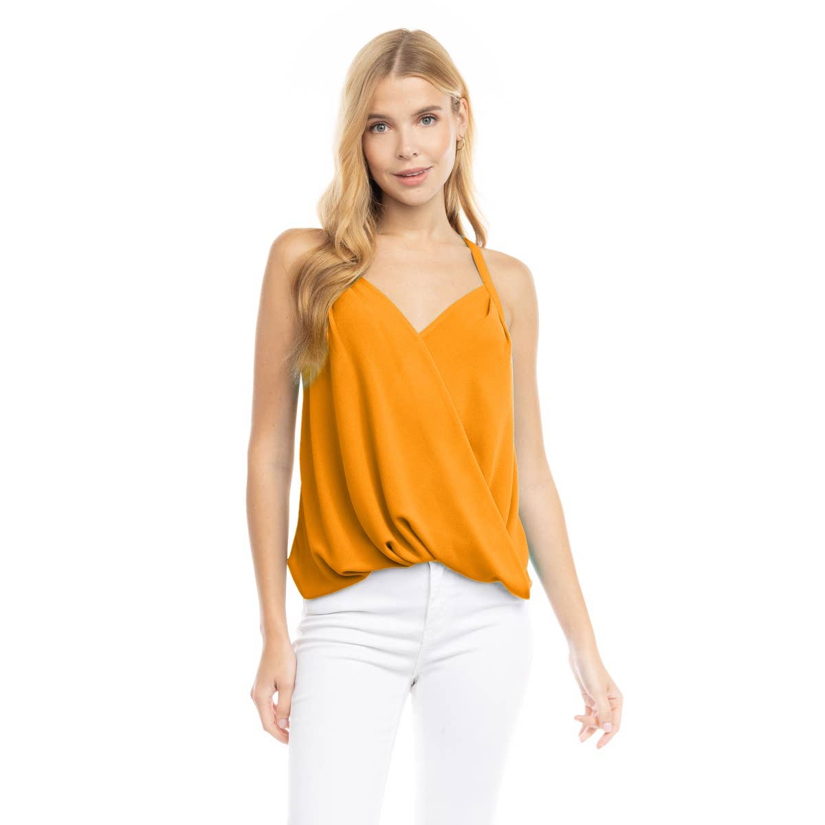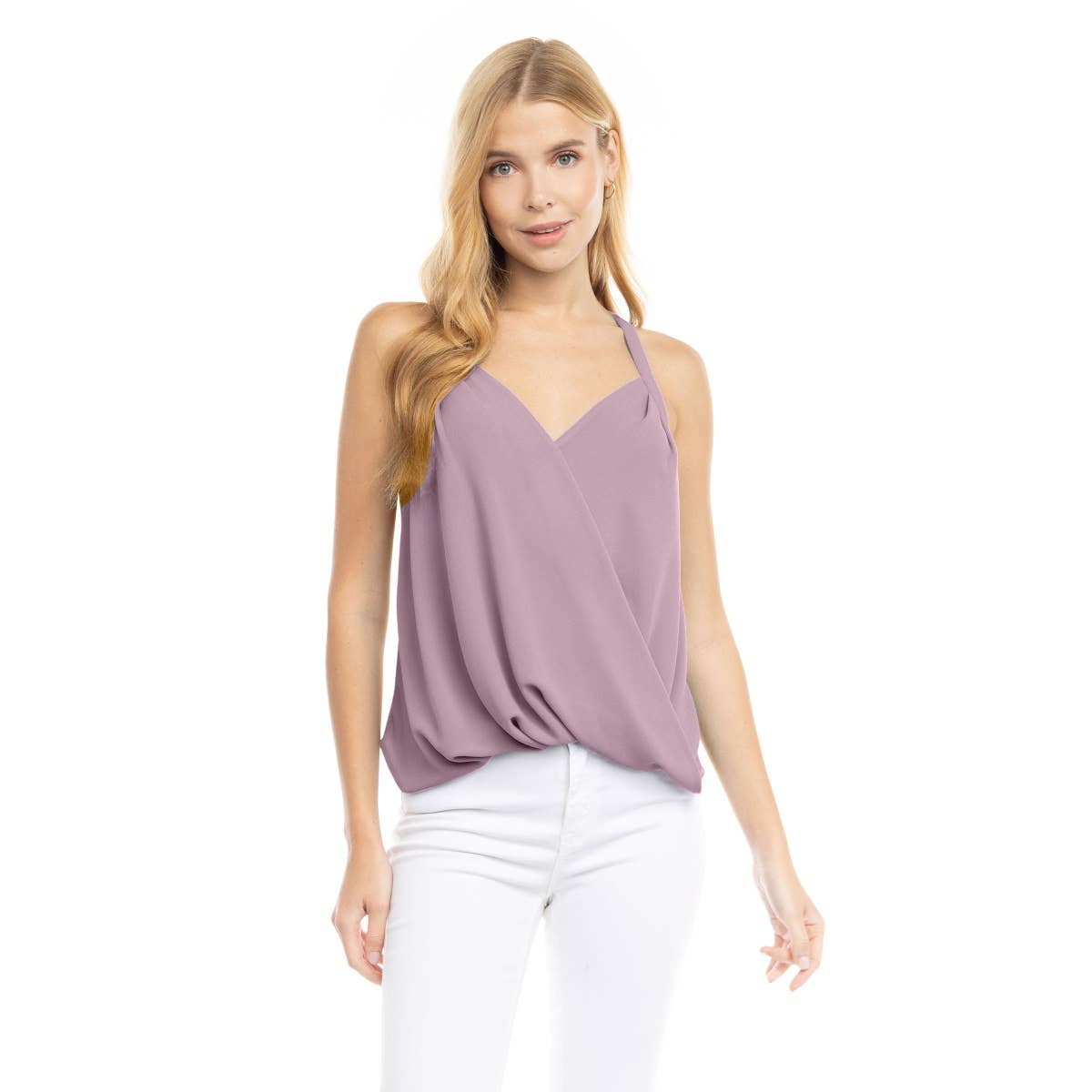 This tank top features an overlapping front design that creates a subtle, yet stylish, draped effect. The sleek silhouette offers a modern twist on the classic tank, making it a versatile choice for layering or wearing on its own. Its soft, breathable fabric provides ultimate comfort, perfect for warm days or as a base layer in cooler temperatures.