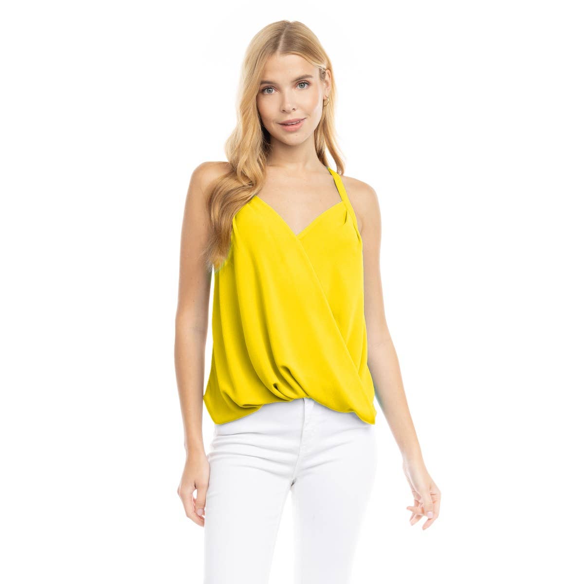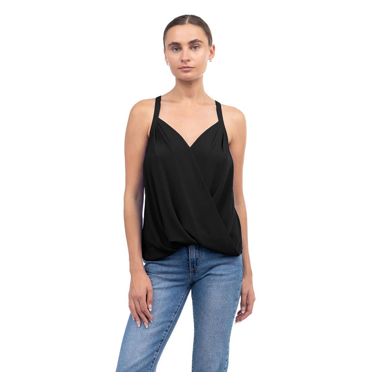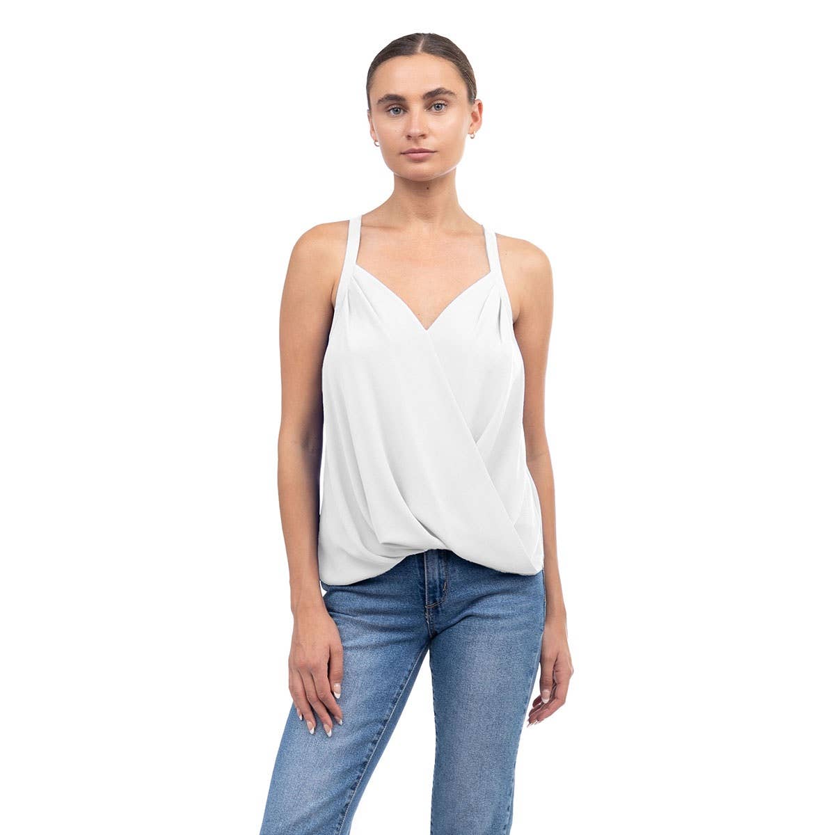 This tank top features an overlapping front design that creates a subtle, yet stylish, draped effect. The sleek silhouette offers a modern twist on the classic tank, making it a versatile choice for layering or wearing on its own. Its soft, breathable fabric provides ultimate comfort, perfect for warm days or as a base layer in cooler temperatures.