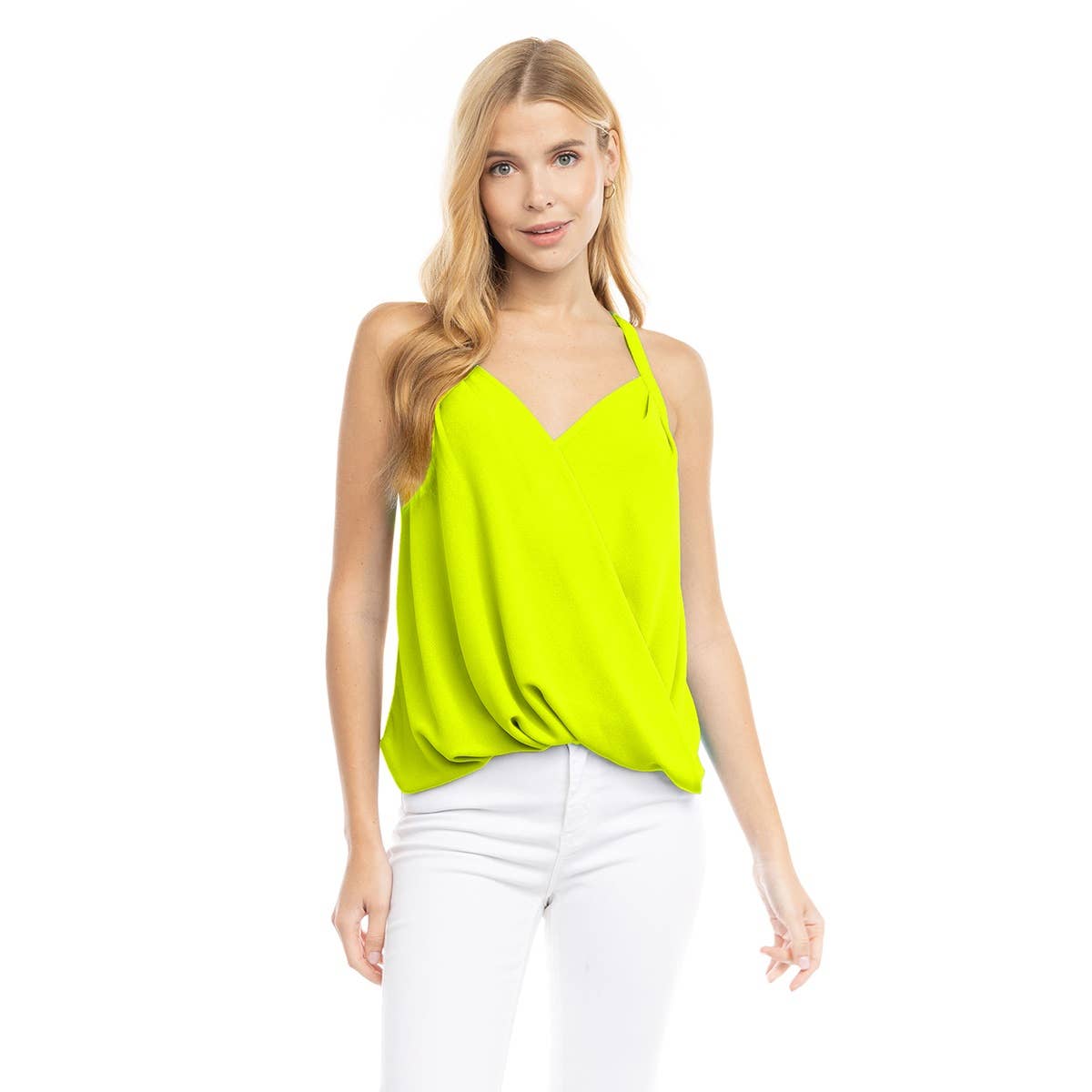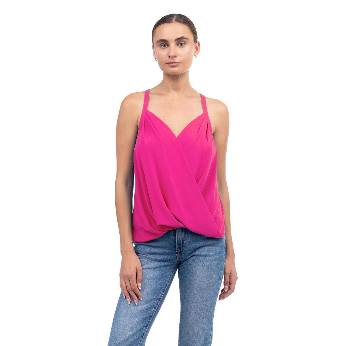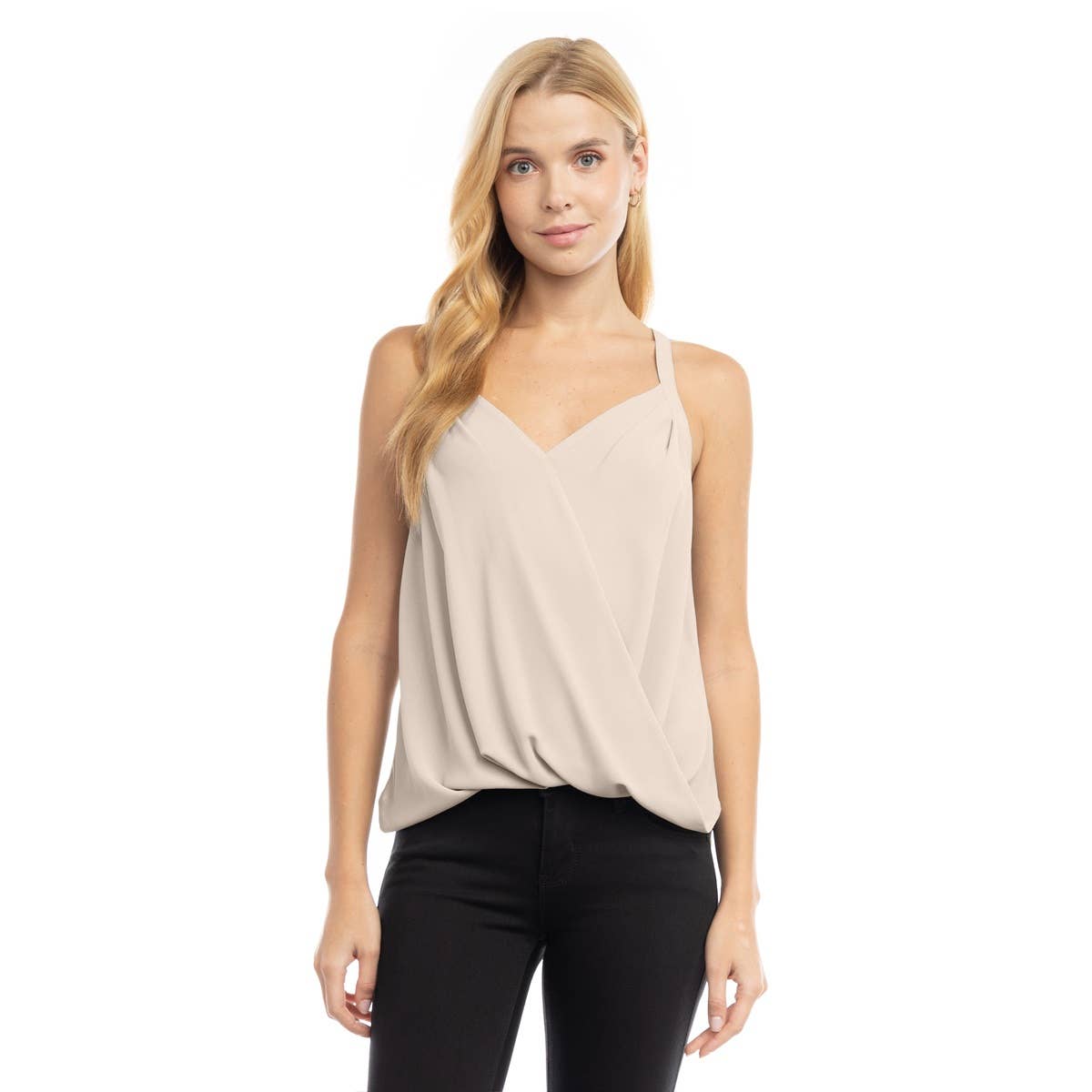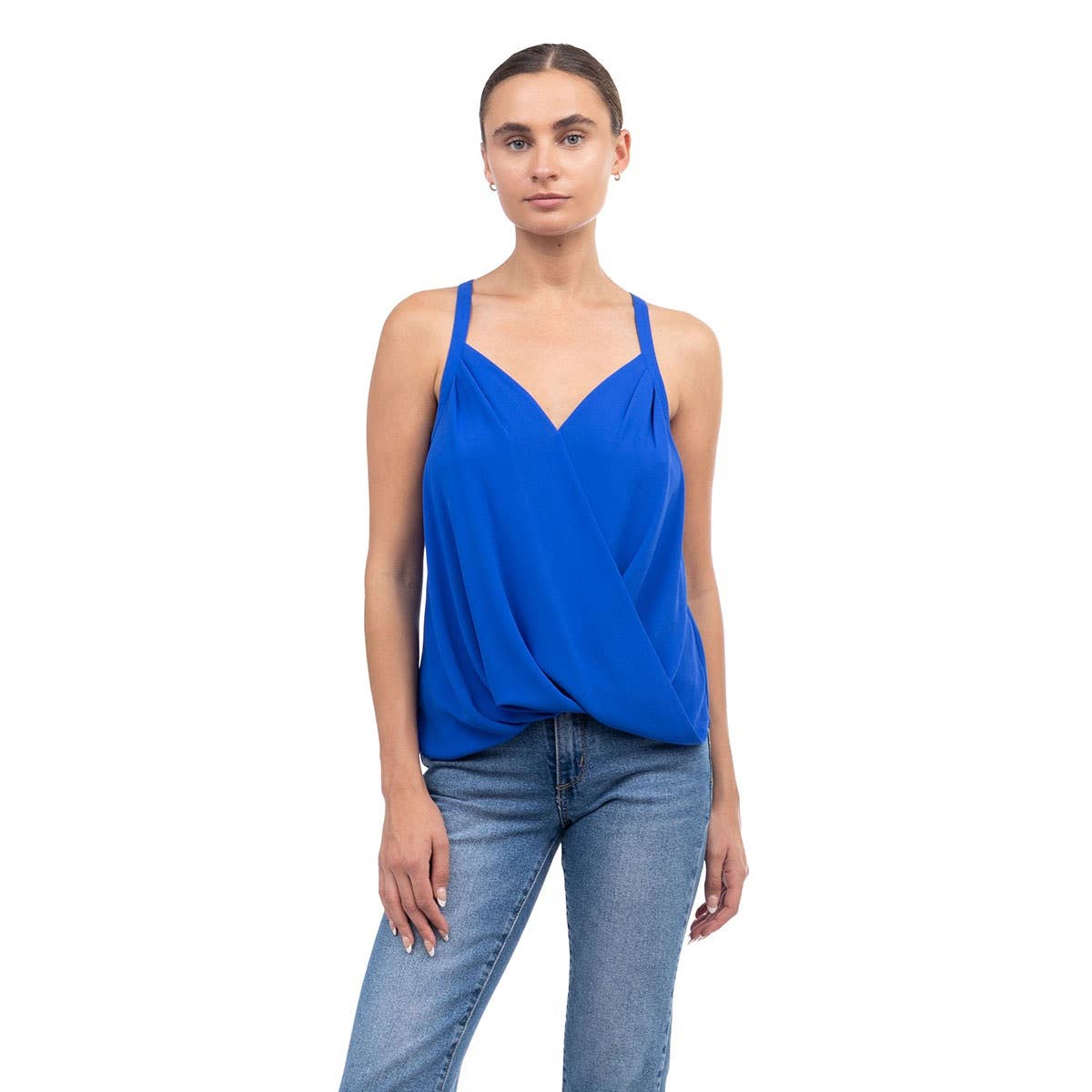 This tank top features an overlapping front design that creates a subtle, yet stylish, draped effect. The sleek silhouette offers a modern twist on the classic tank, making it a versatile choice for layering or wearing on its own. Its soft, breathable fabric provides ultimate comfort, perfect for warm days or as a base layer in cooler temperatures.