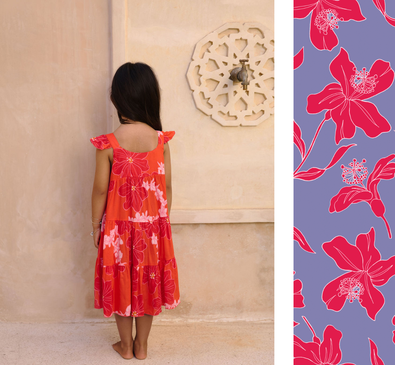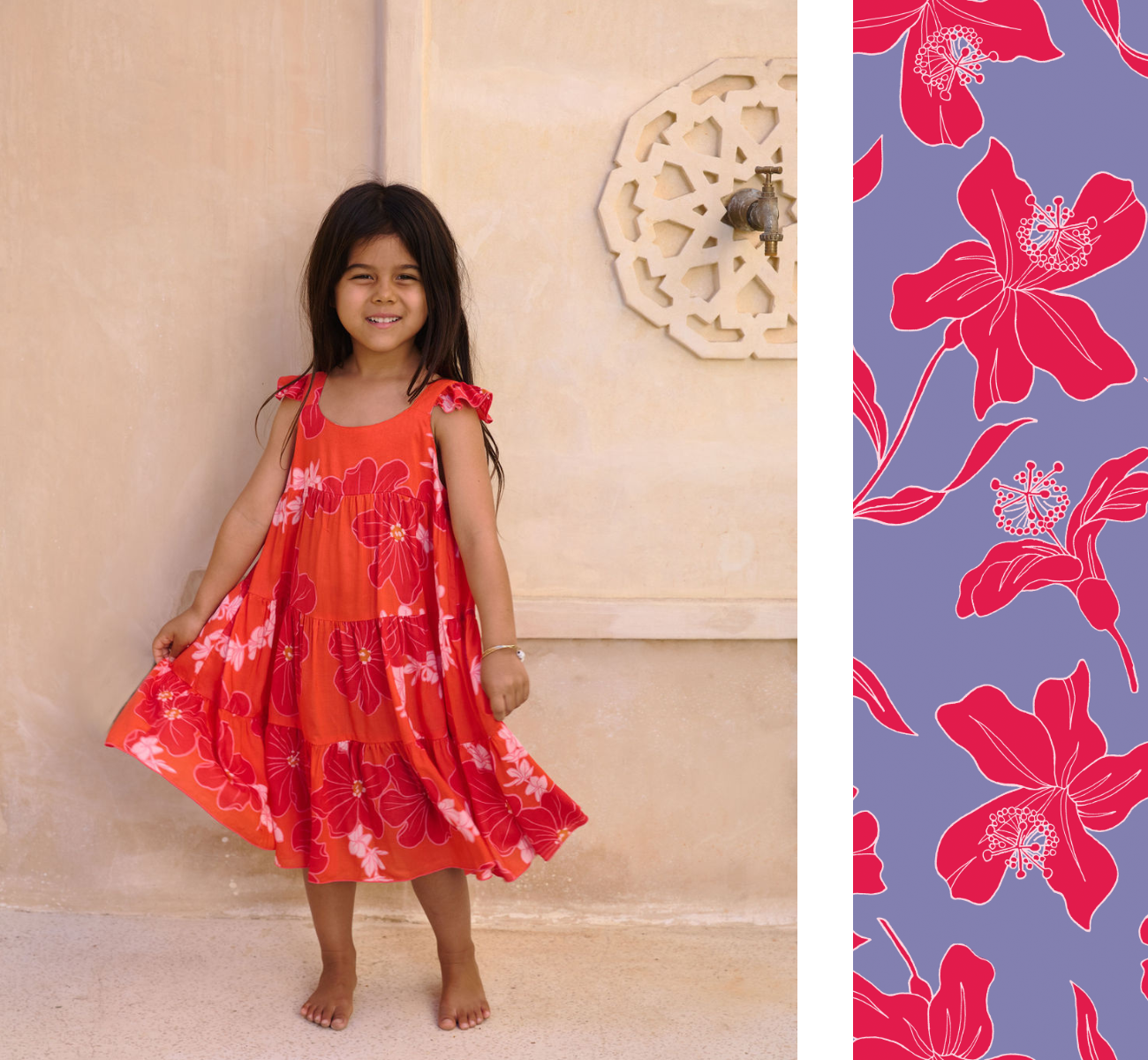 The Paisley Dress features delicate flutter sleeves and a tiered skirt. *Please see swatch for exact color. This is part of our Merrie Monarch/Lei Day release.*