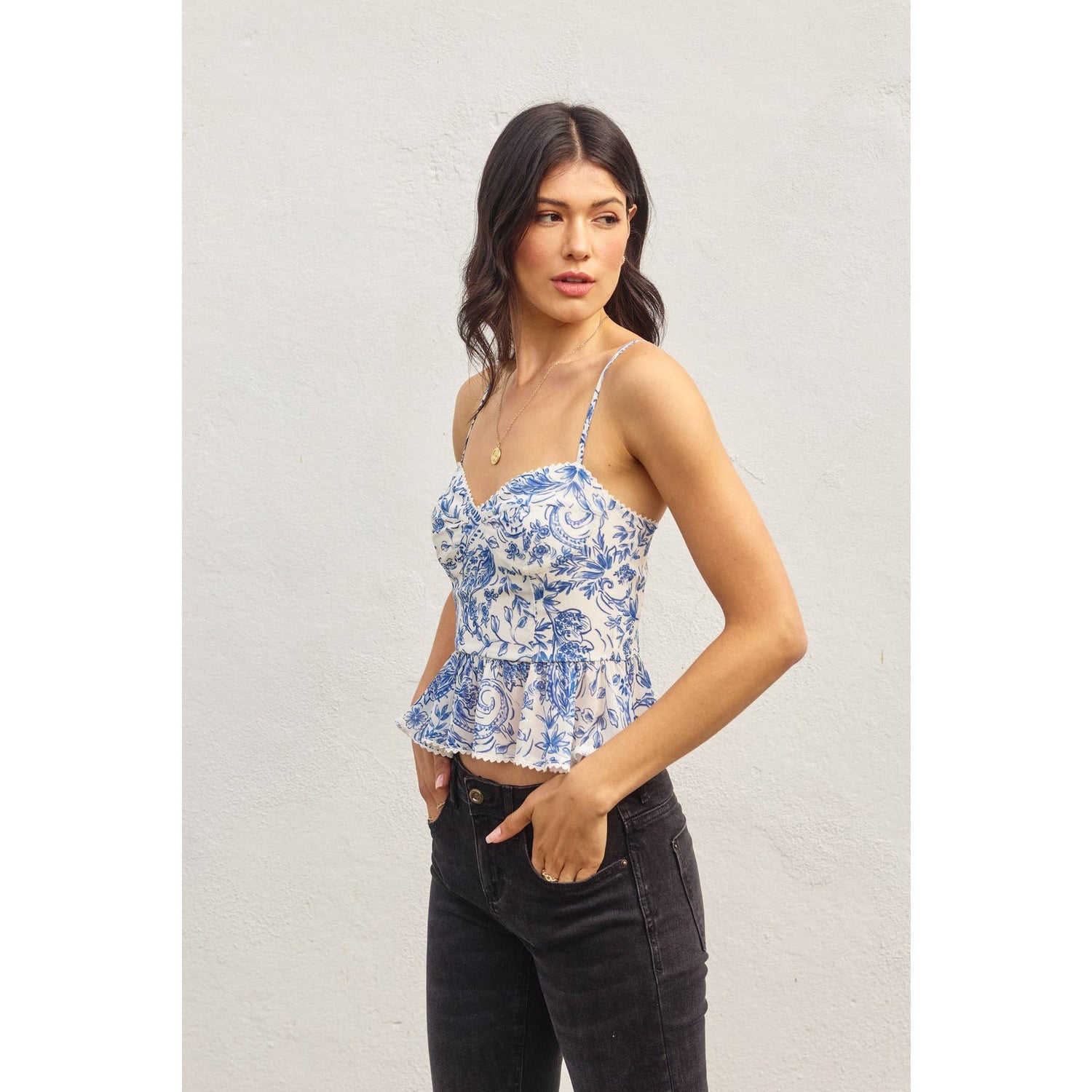 Porcelain Paisley Flared Cami Top: RIVIERA / FT12175-P1729