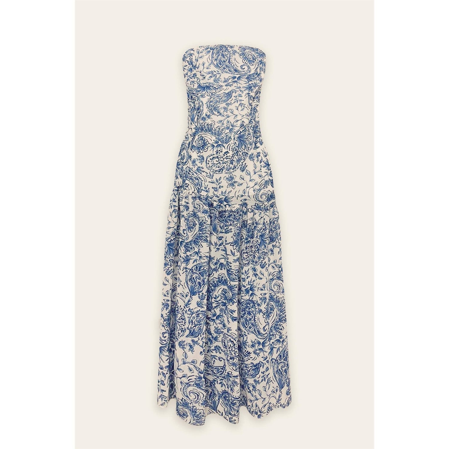 Porcelain Paisley Strapless Drop Waist Maxi Dress: RIVIERA / FD12326-P1729