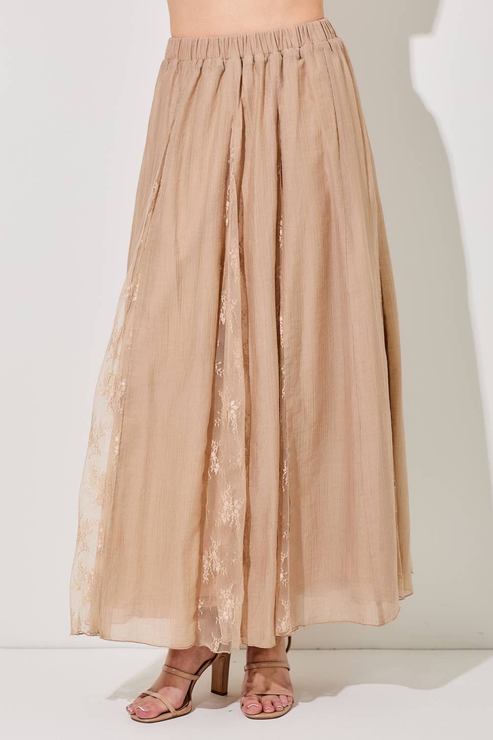 PRINTED FLORAL SHEER MAXI SKIRT: TAUPE / BK1338