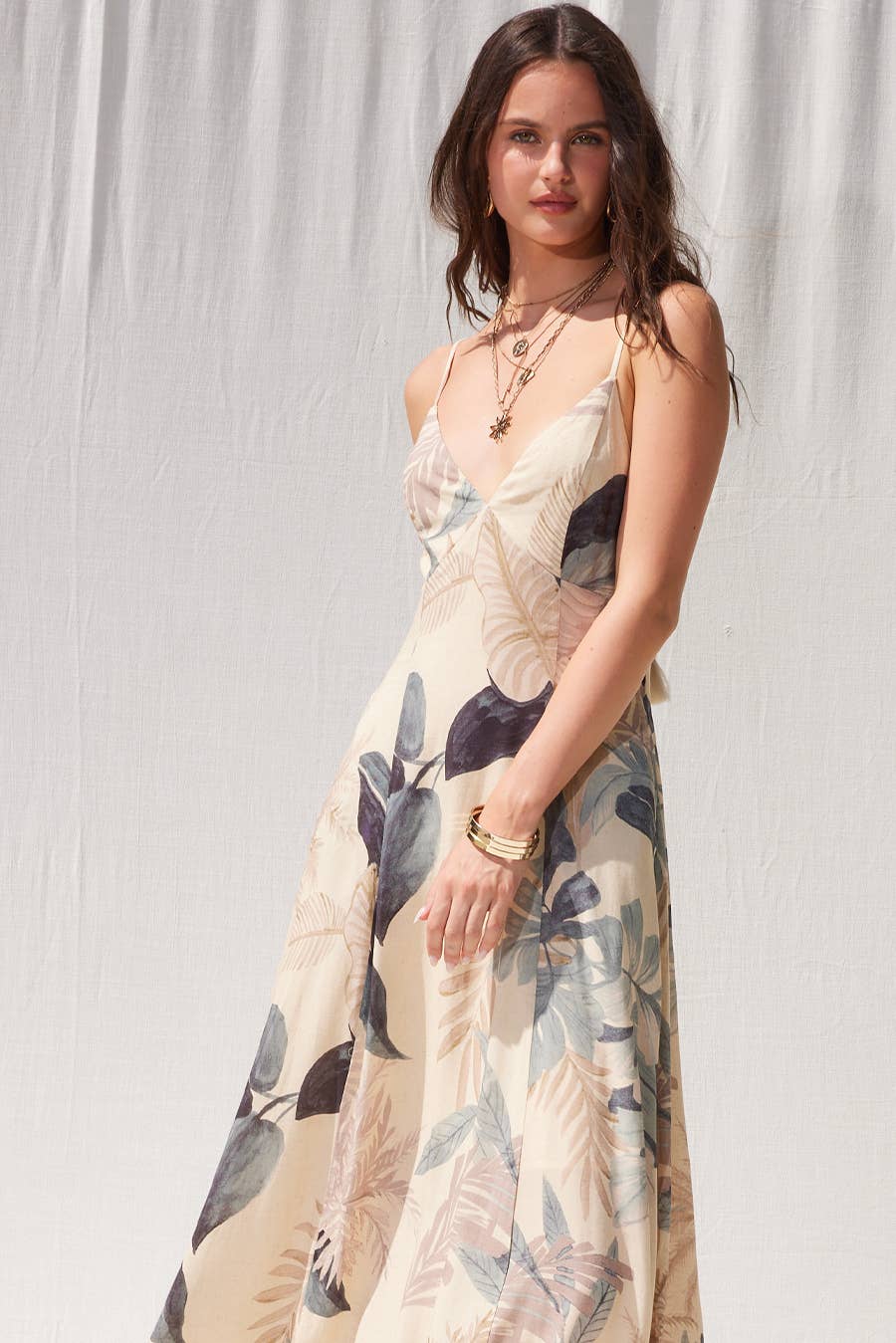 Printed Open Back Maxi Dress: D3154k