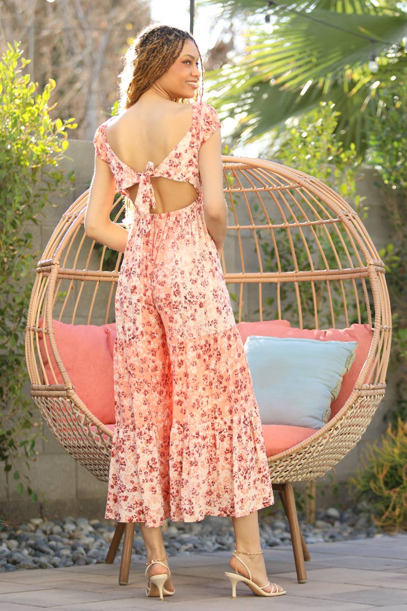 V NECK WIDE LEG SHORT SLEEVE JUMPSUIT