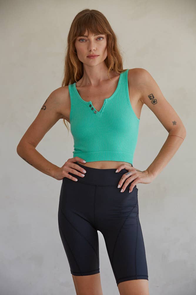 High Quality Seamless Square Neck Wide Shoulder Button Down Crop Tank (S1069-1 Longer Version)
