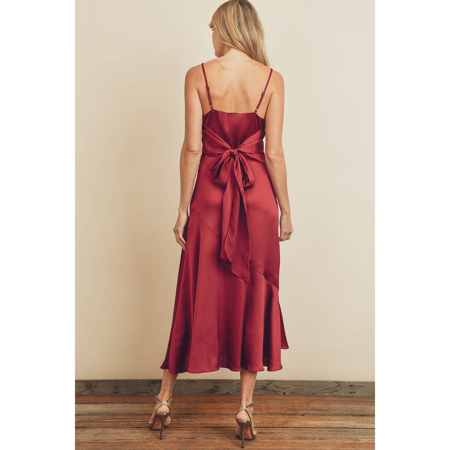 Satin Tie-Back Slit Midi Dress: SANGRIA / FD4571_1