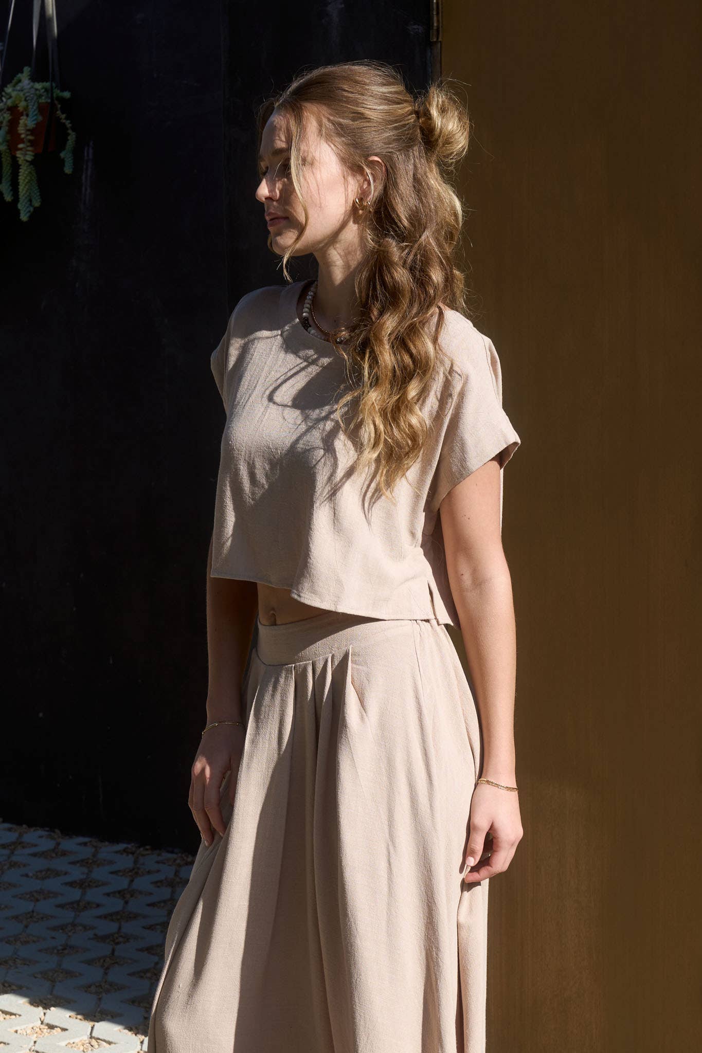 B5SX1033-T BOXY LINEN BLOUSE: LIGHT TAN