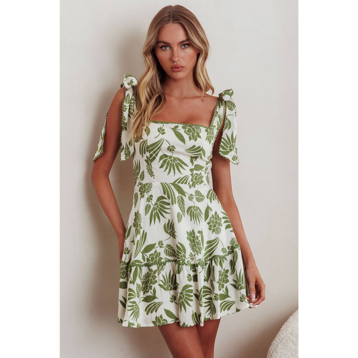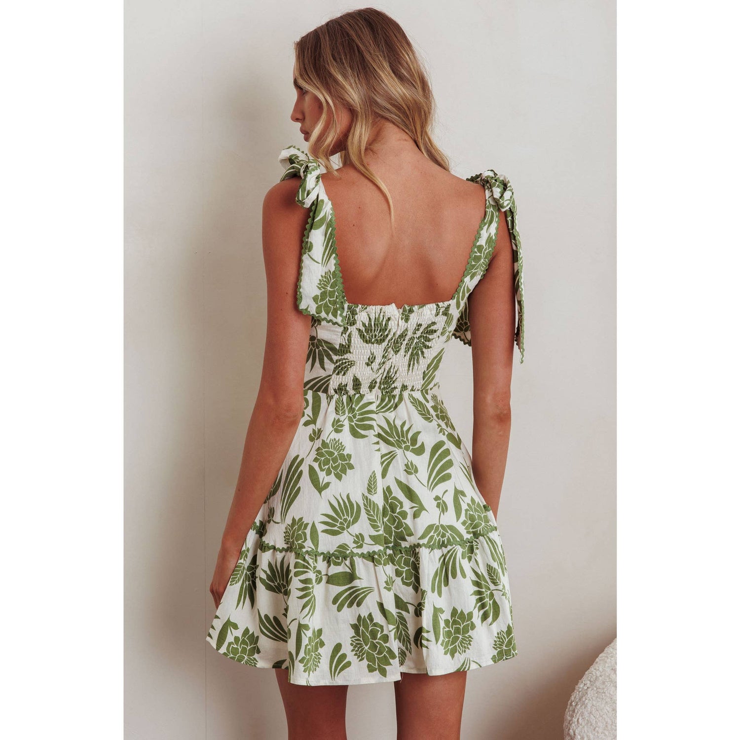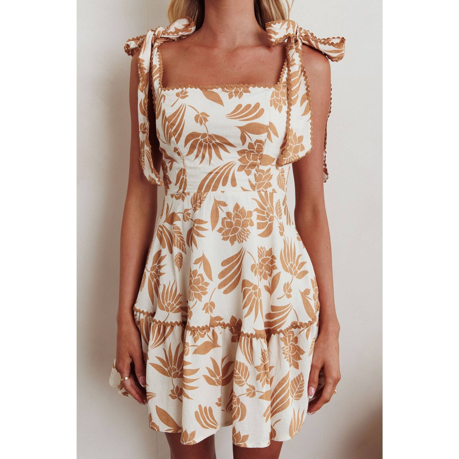 SHOULDER STRAP TIED MINI DRESS: BEIGE / SR1313D
