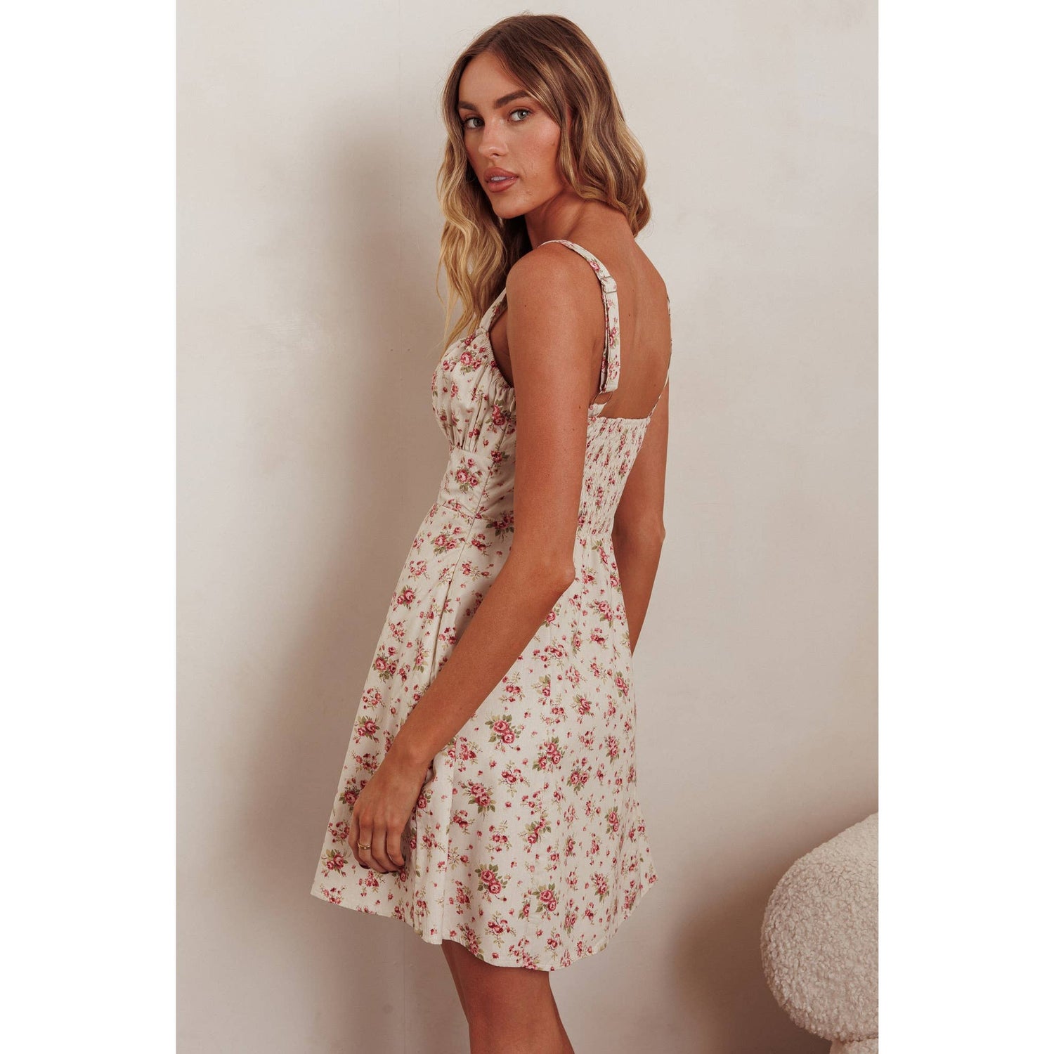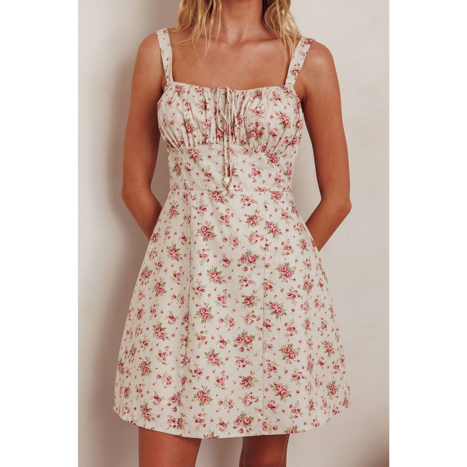 SLEEVELESS FLORAL MINI DRESS: CHERRY / SR1186J03