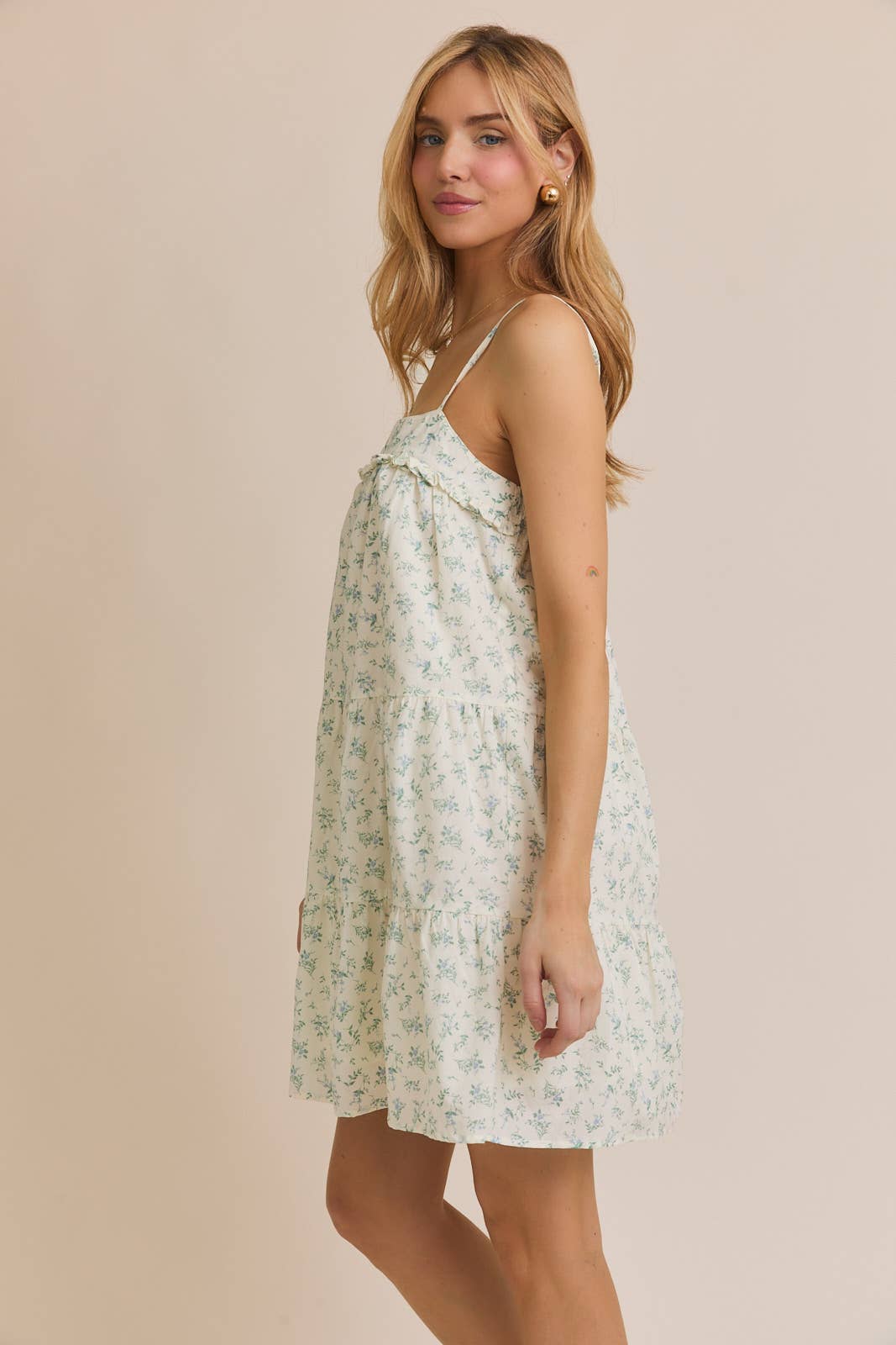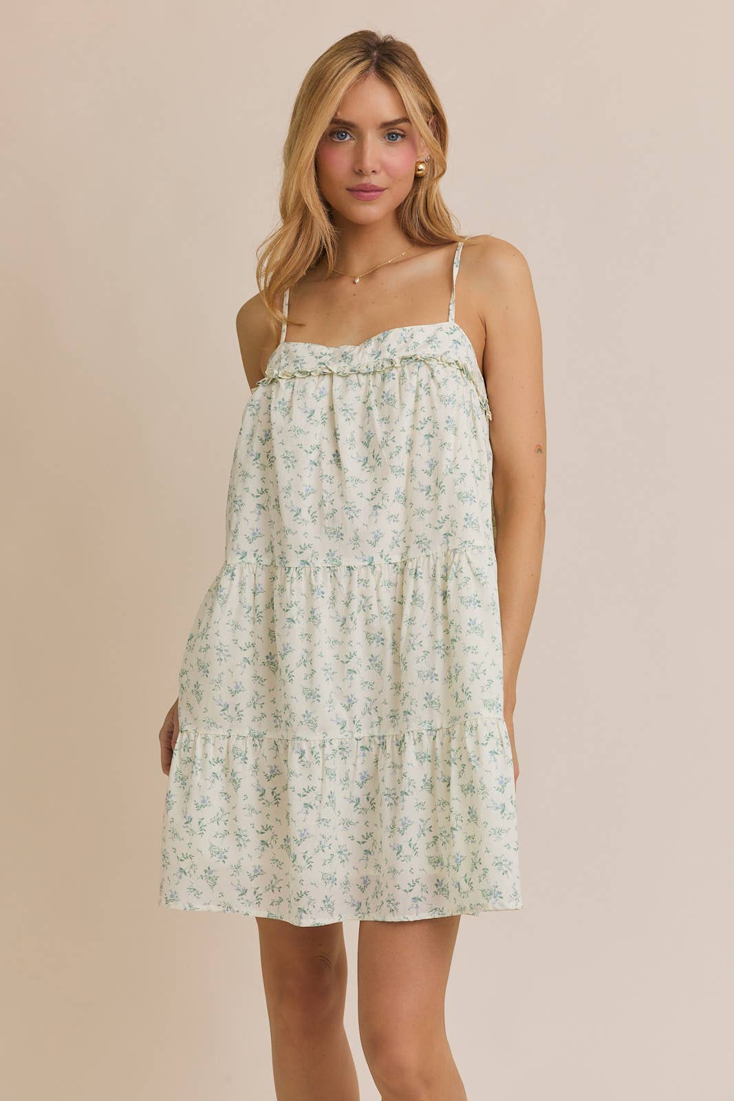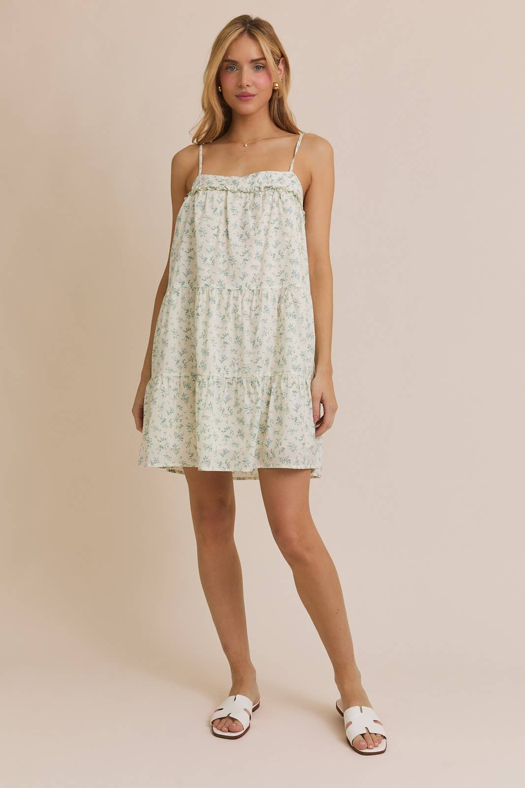 SLEEVELESS TIERED MINI DRESS: CREAM-BLUE FLORAL / MD10644