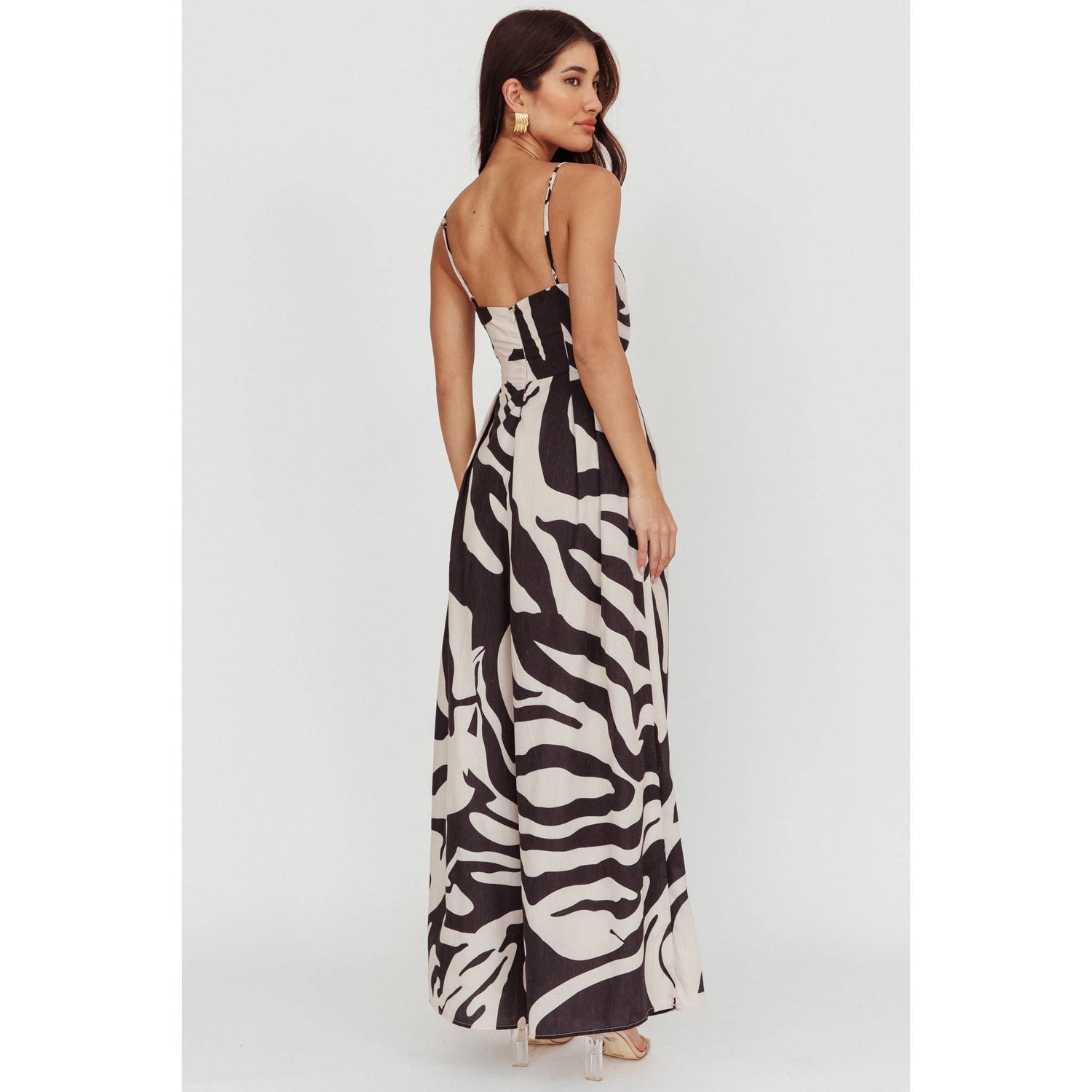 SLEEVELESS ZEBRA PRINT JUMPSUIT: BEIGE / SR0566B09