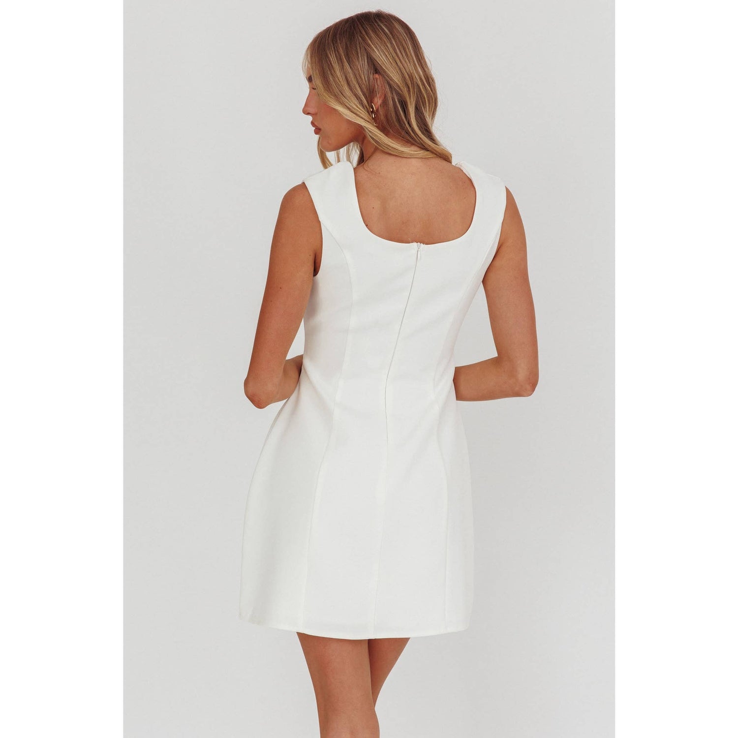 SQUARE NECK BRIDAL MINI DRESS / BR0091D01: WHITE