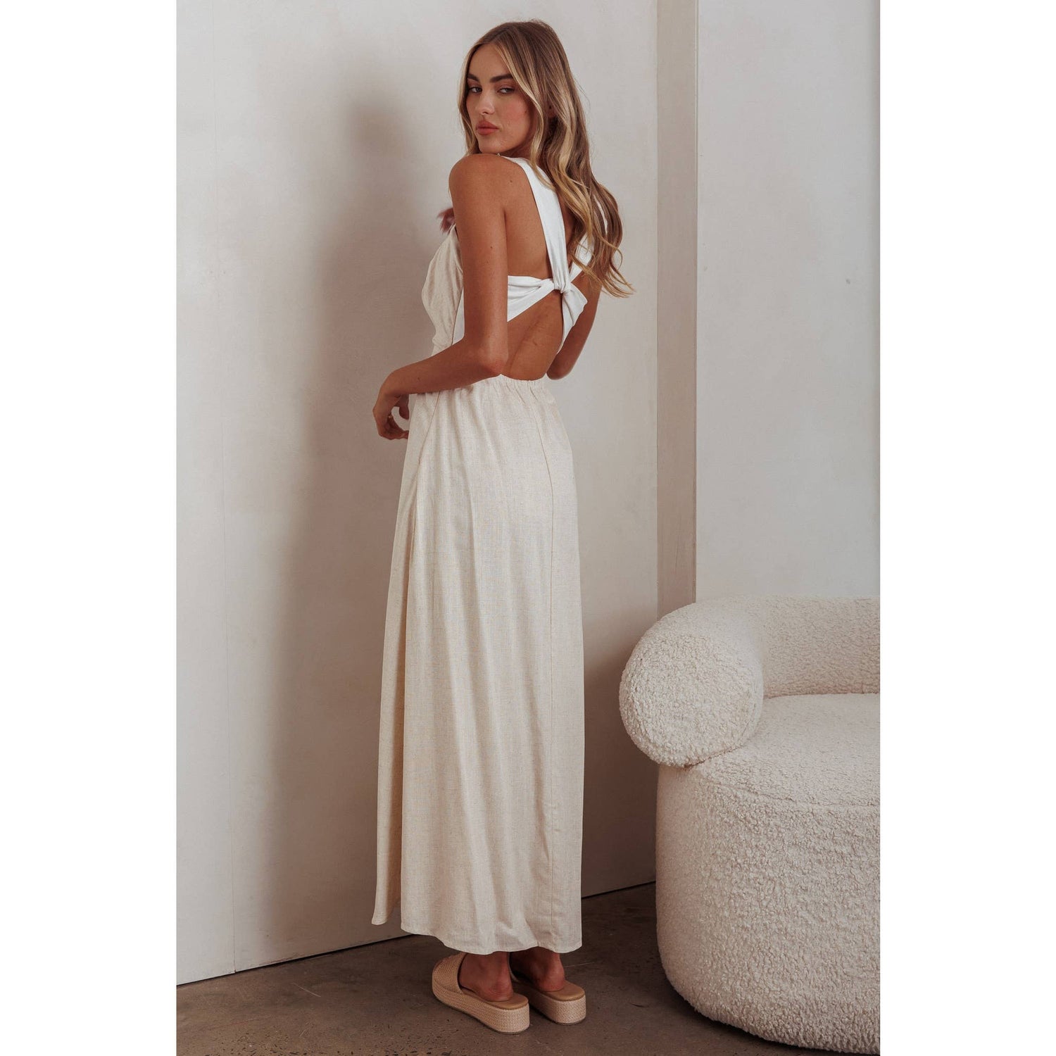 SQUARE NECK MAXI DRESS: OAT/WHITE / SR1465J
