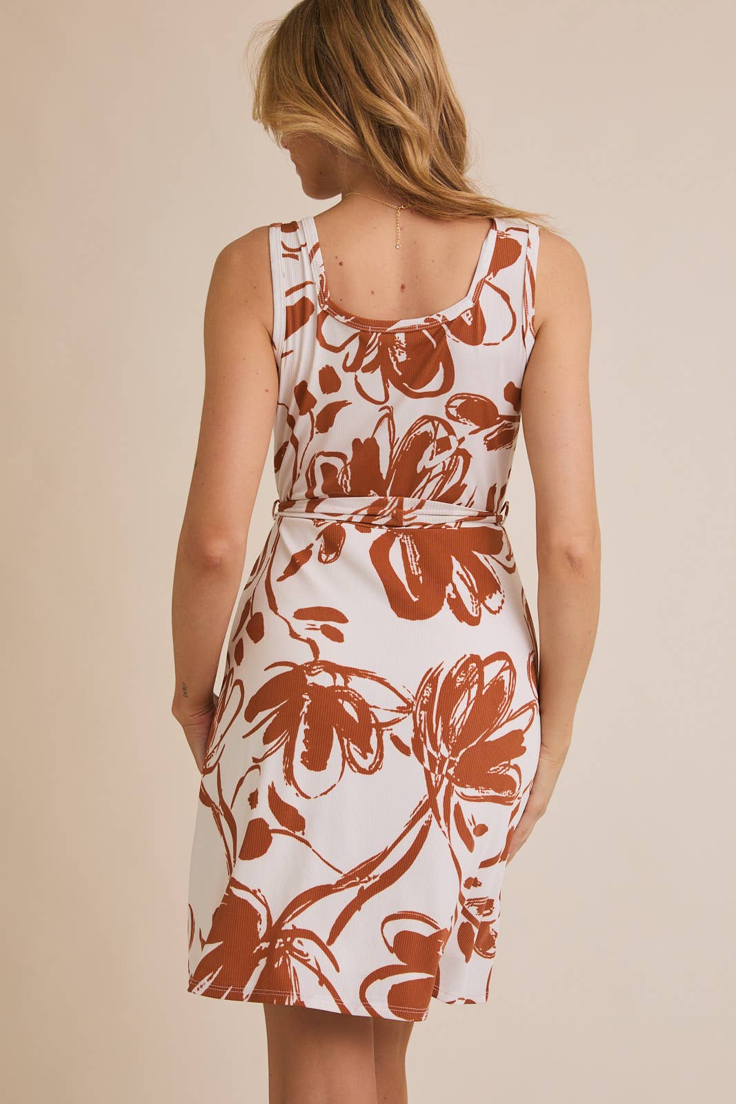SQUARE NECK SLEEVE STRAP TIE FLORAL DRESS: TERRACOTTA FLORAL / D20091-1