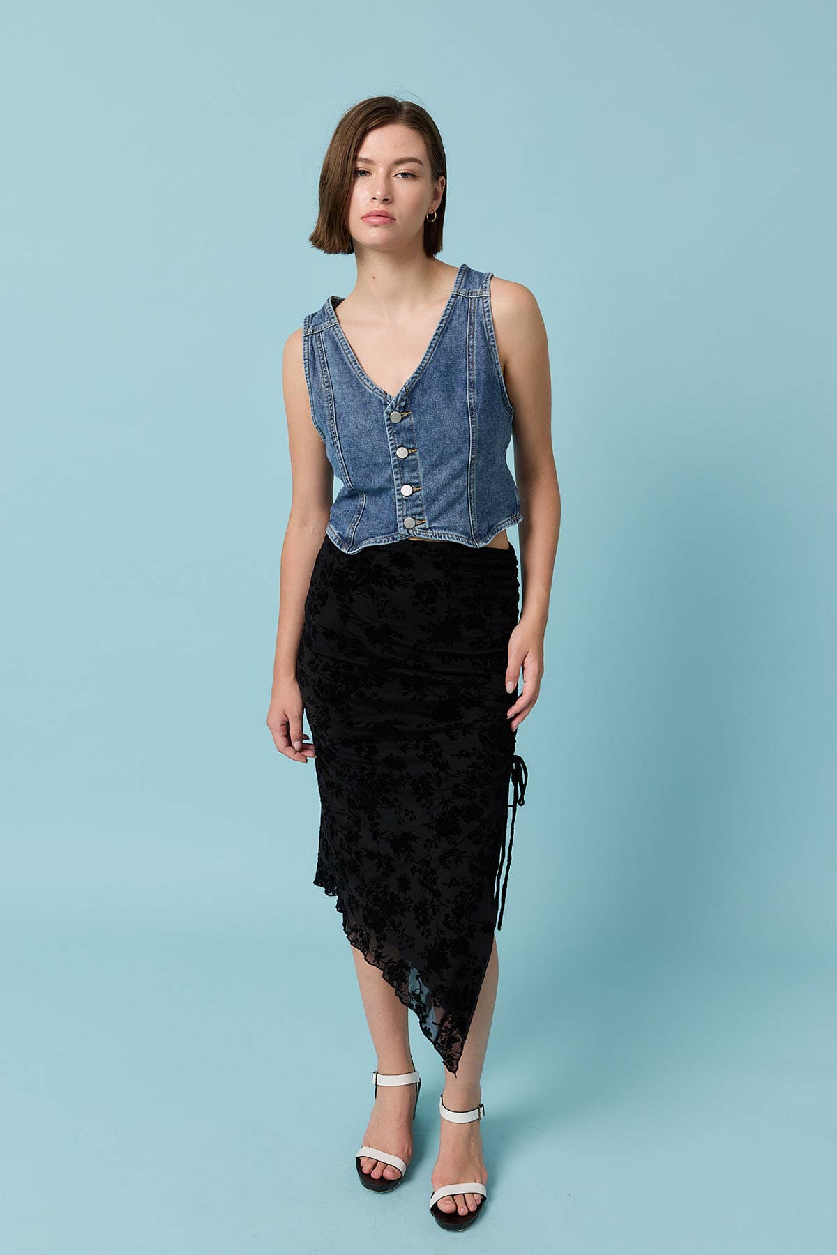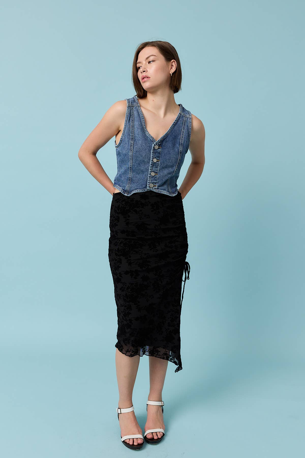 Velvet Mesh Jacquard Skirt - MB7345: Black