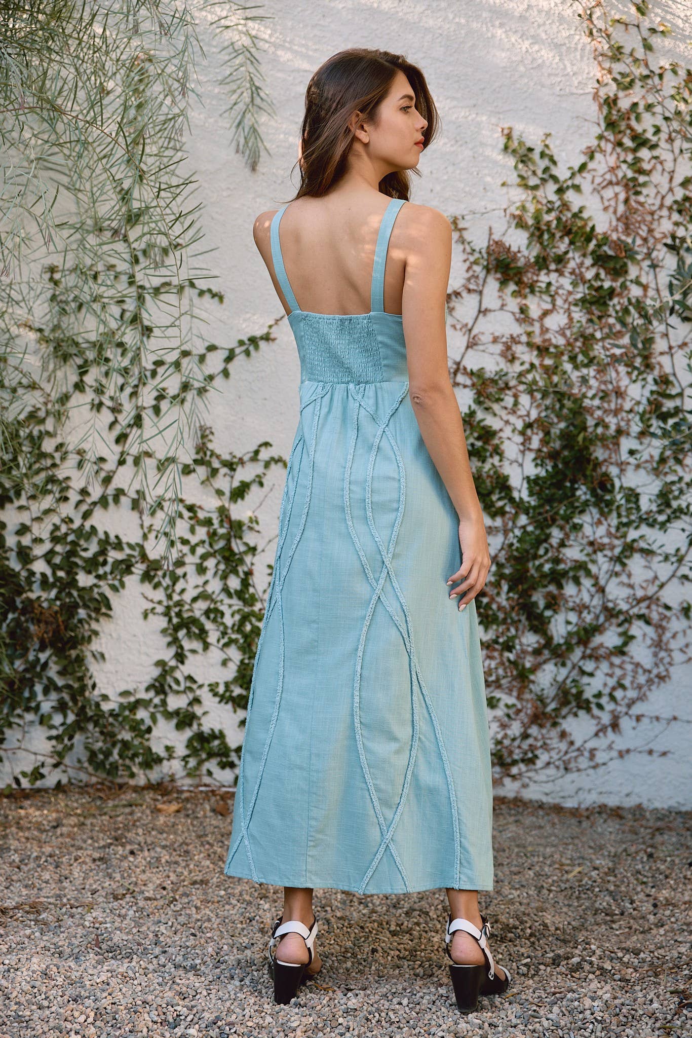Wavy Trimmed Long Dress - RD1089: CHAMBRAY BLUE