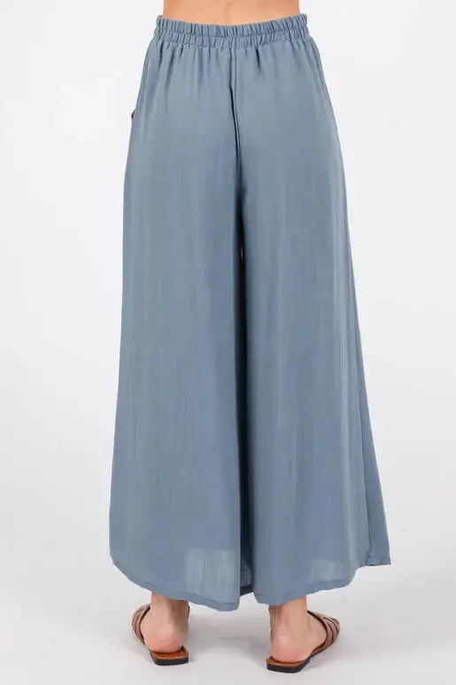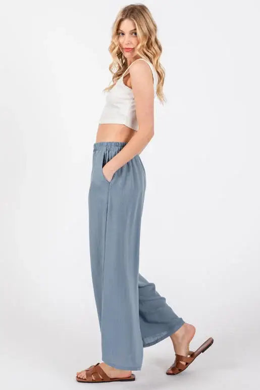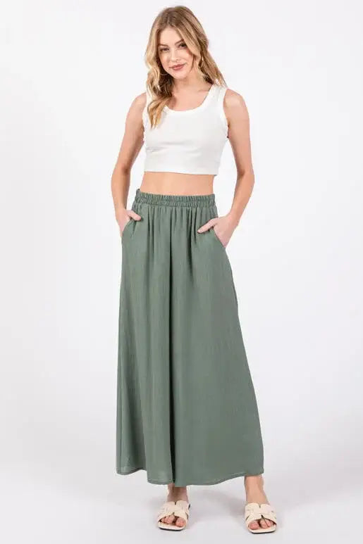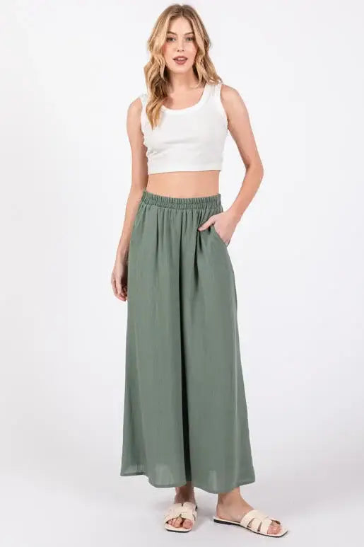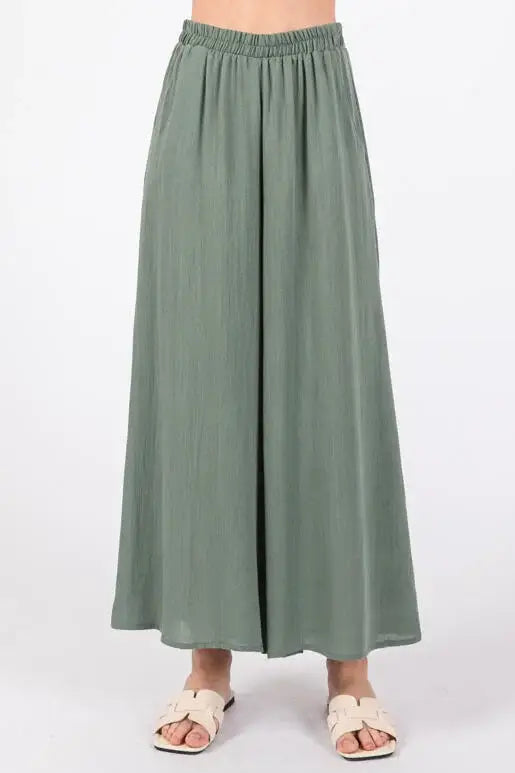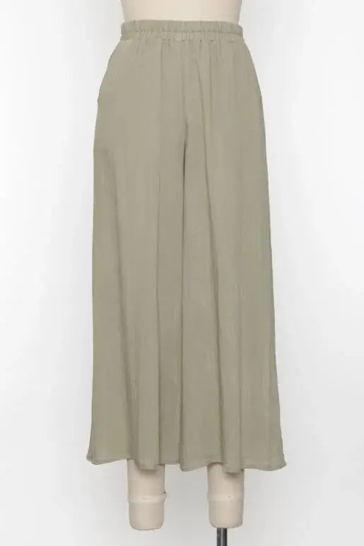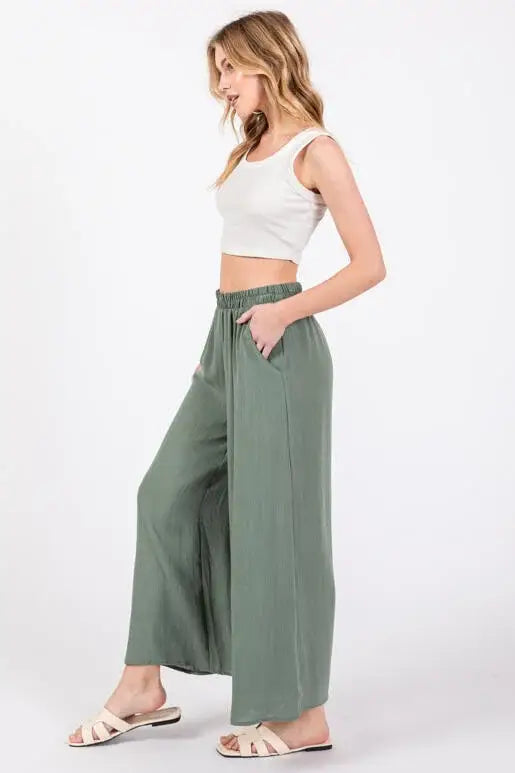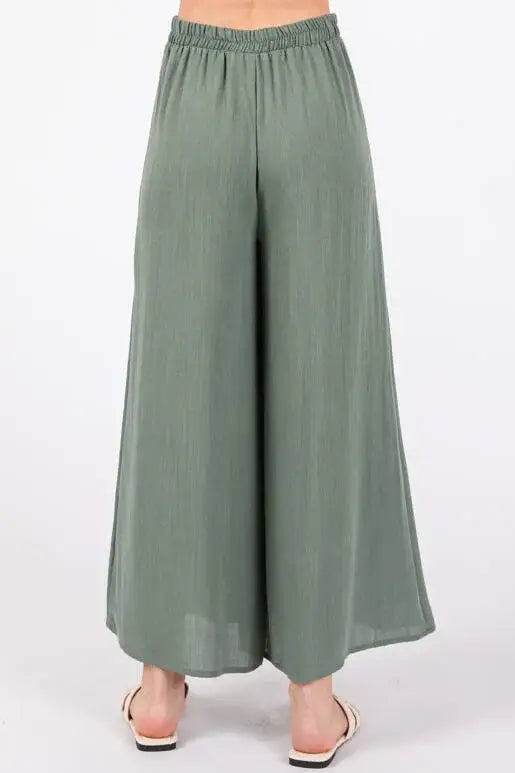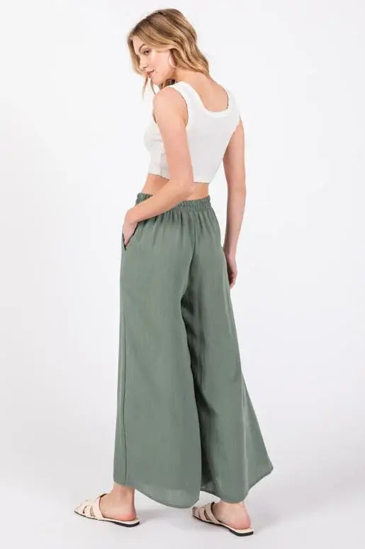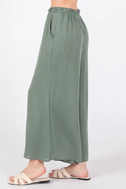 Woven Wide Leg Pull on Pants - NP16207E10: Sage Green