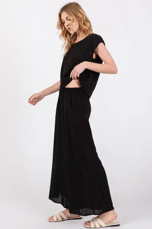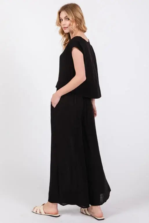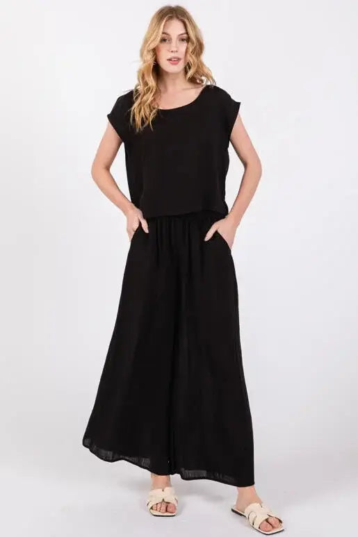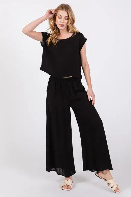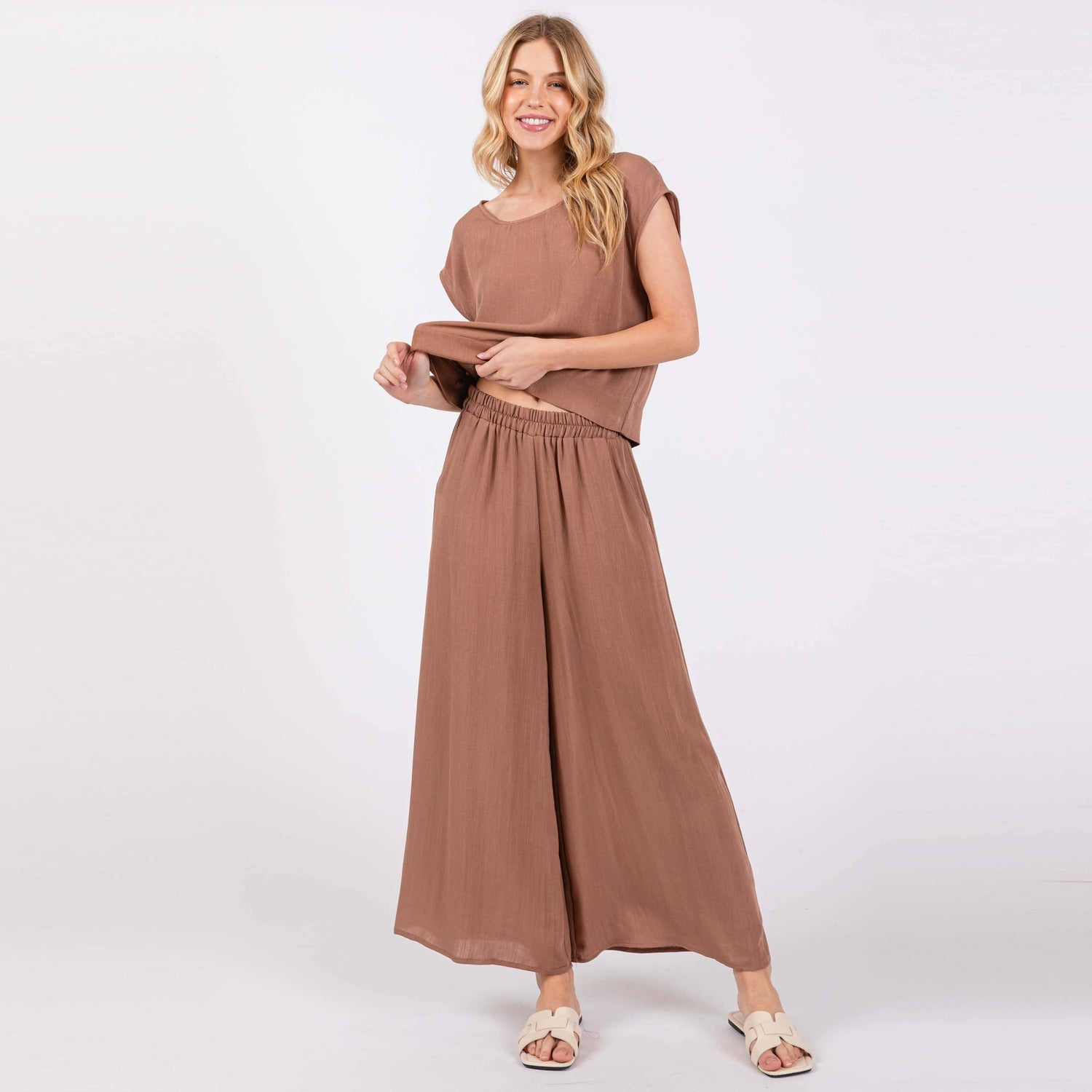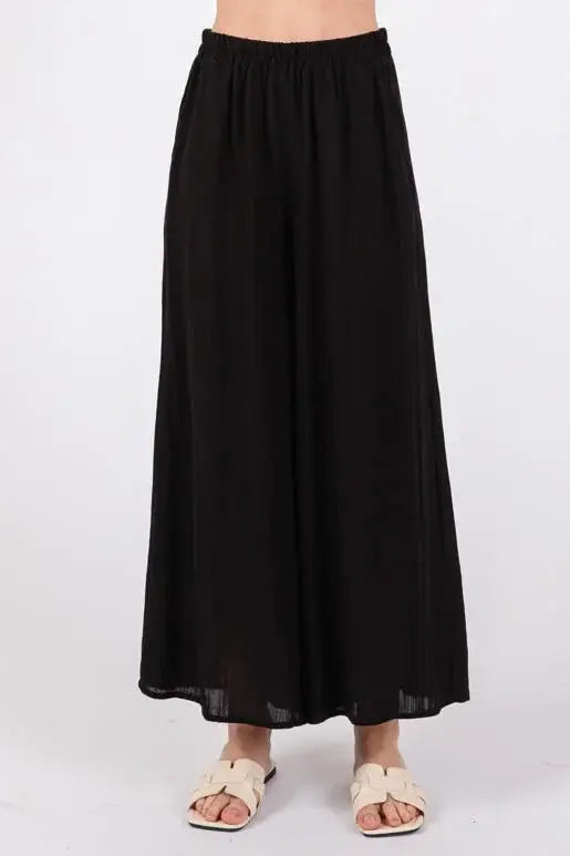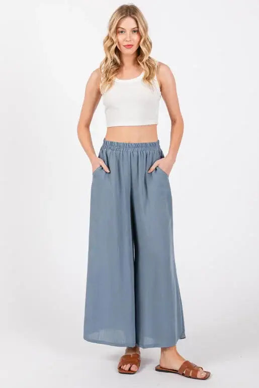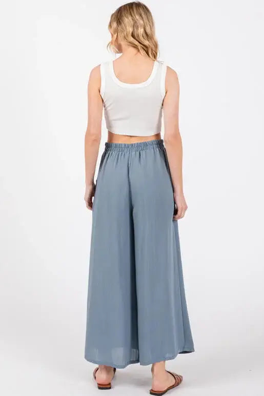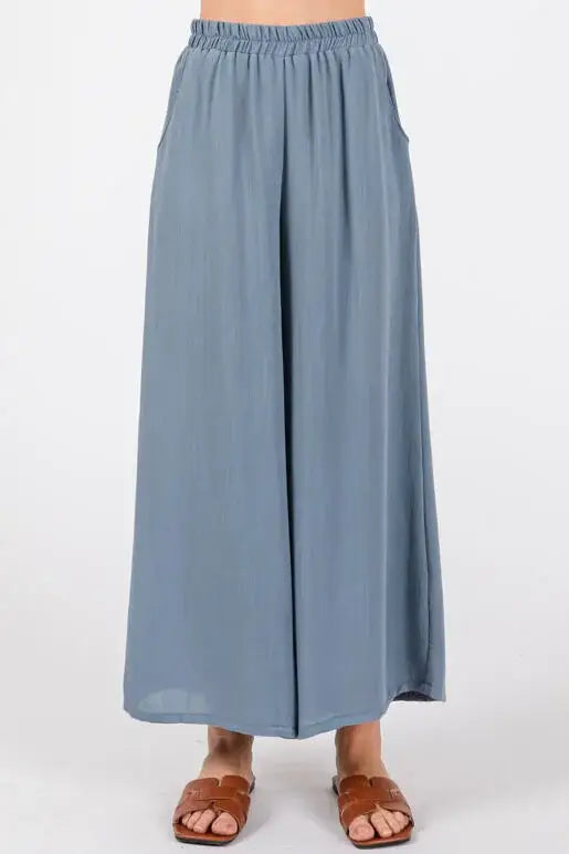Woven Wide Leg Pull on Pants - NP16207E10: Sage Green